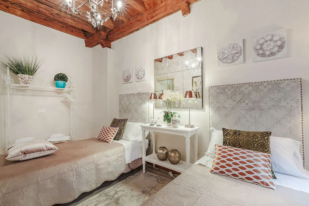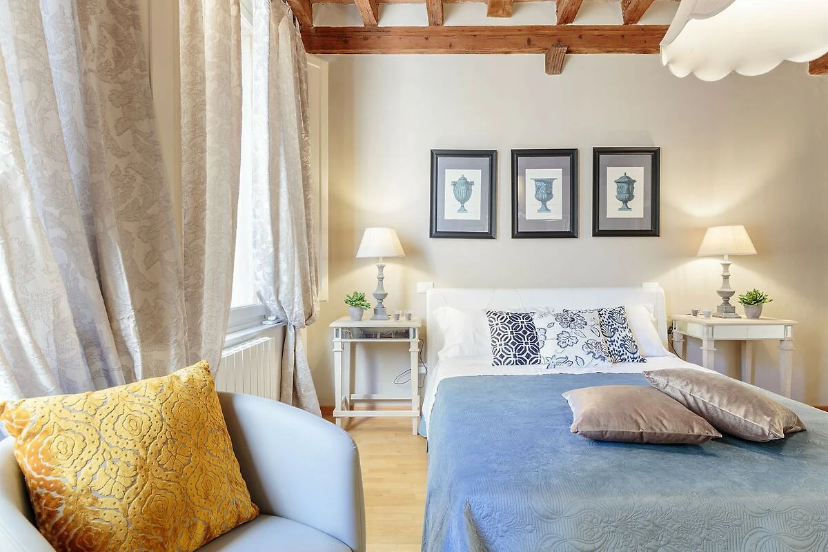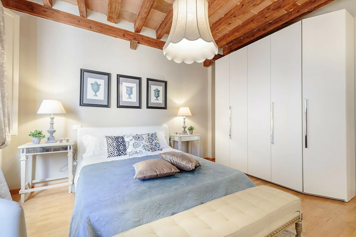 Questo appartamento al primo piano (un piano fuori terra, senza ascensore) fonde un fascino secolare con un comfort moderno e pulito. La zona giorno e pranzo open space è luminosa e accogliente, con una cucina compatta per preparare facilmente i pasti a casa. Due camere da letto, una con letto king-size e l'altra con due letti singoli, offrono spazi rilassanti, mentre il bagno è dotato di cabina doccia e lavatrice. L'aria condizionata in entrambe le camere e il Wi-Fi ad alta velocità garantiscono un soggiorno confortevole in tutte le stagioni. L'appartamento si trova nella ZTL (Zona a Traffico Limitato), quindi non è possibile parcheggiare in loco, ma il parcheggio più vicino è raggiungibile a piedi. Anche la stazione ferroviaria è raggiungibile a piedi, rendendo facili e comode le gite di un giorno nelle vicine città toscane.