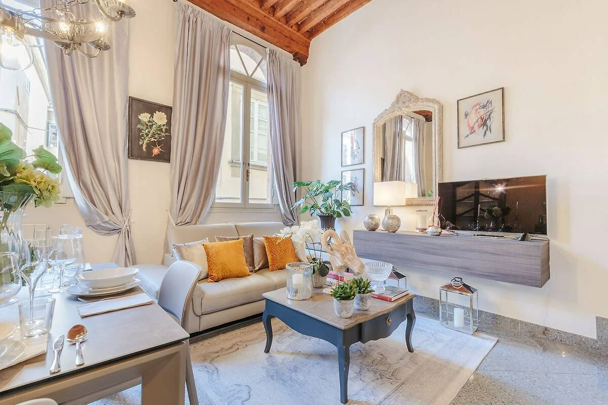 Situato nel cuore del centro storico di Lucca, questo elegante appartamento offre un posto in prima fila per ammirare il ricco patrimonio storico e la vivace vita cittadina. Ubicato in un palazzo del XII secolo splendidamente conservato, l'appartamento si affaccia direttamente su Piazza Cittadella e Piazza San Michele, due dei monumenti più iconici di Lucca. Appena fuori dalla porta, scoprite la casa natale di Giacomo Puccini, suggestivi spettacoli d'opera, incantevoli caffè, gelaterie artigianali e ristoranti raffinati come il rinomato La Buca di Sant'Antonio.
