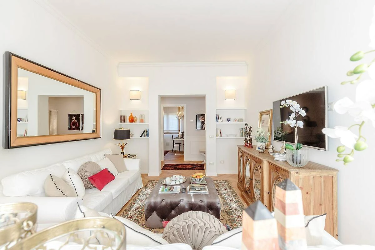 All'interno, l'appartamento coniuga il fascino della tradizione italiana con l'eleganza del comfort moderno. Eleganti tocchi d'antiquariato incontrano arredi contemporanei e la zona giorno e pranzo open space è ideale per ritrovarsi dopo una giornata di visite turistiche. C'è anche un'accogliente sala TV e una cucina ben attrezzata con zona colazione. Un lussuoso bagno in marmo, biancheria di alta qualità e dettagli curati in ogni dettaglio creano un rifugio invitante e rilassante.