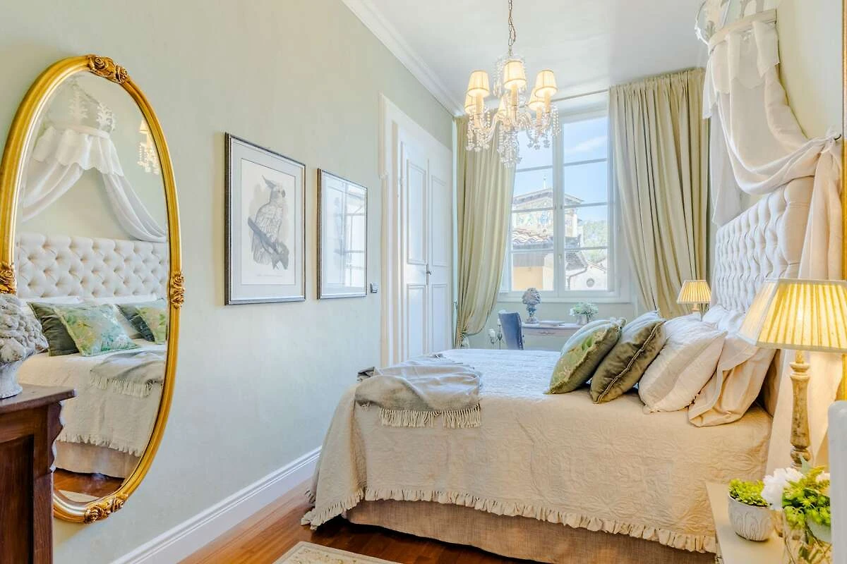 All'interno, ampie finestre inondano di luce l'elegante soggiorno, illuminando un maestoso lampadario e rivelando una vista parziale del mosaico bizantino sulla facciata della Chiesa di San Frediano. Con tre spaziose camere da letto principali, una delle quali con bagno privato, e una raffinata zona pranzo con cucina ben attrezzata, l'appartamento offre un'eleganza senza tempo con tutti i comfort moderni. Che stiate preparando piatti toscani o ospitando uno chef privato, la casa è perfetta per serate intime e momenti di relax.