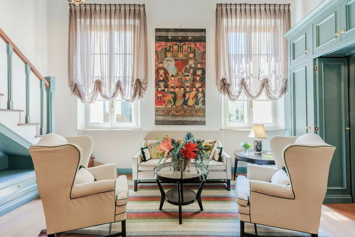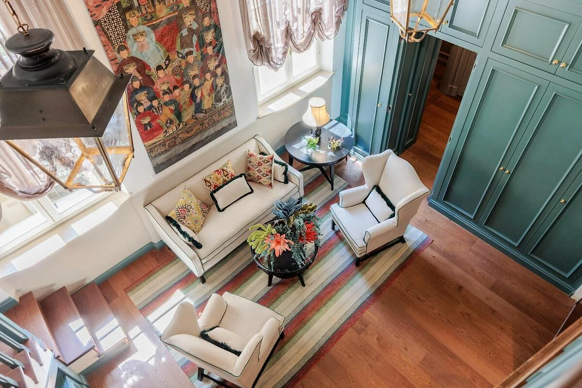 Questa raffinata dimora offre una straordinaria fusione di architettura storica e comfort moderni. Dispone di quattro camere da letto matrimoniali e quattro bagni completi, una cucina professionale con elettrodomestici di alta qualità e due eleganti soggiorni, ognuno con il proprio angolo bar, ideale per preparare cocktail o trascorrere serate rilassanti con amici e familiari. Aria condizionata, Wi-Fi ad alta velocità e riscaldamento garantiscono comfort tutto l'anno, mentre le ampie finestre inondano l'ambiente di luce naturale, creando un'atmosfera calda e accogliente.