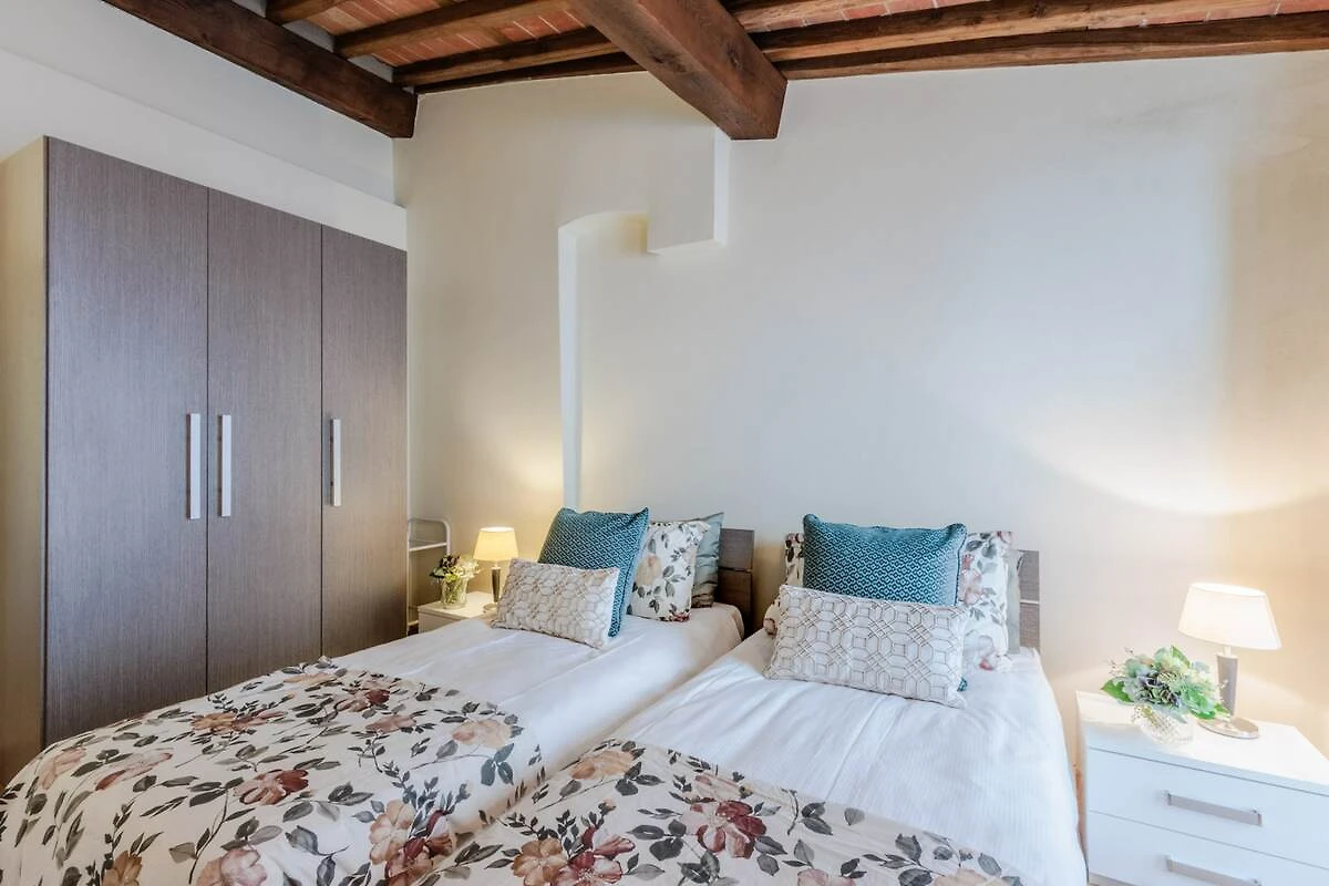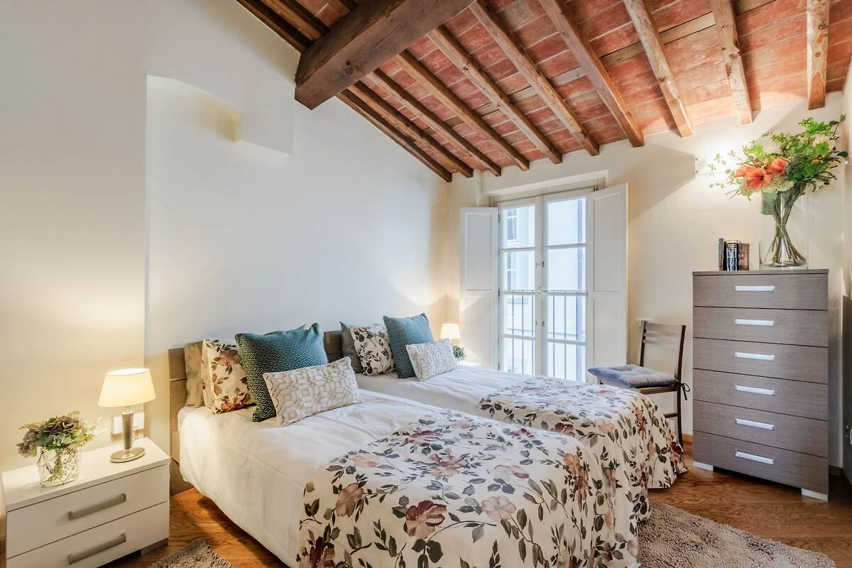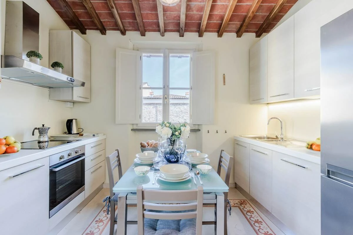 Scoprite il fascino di Lucca in questo appartamento con due camere da letto splendidamente ristrutturato, che fonde perfettamente l'architettura tradizionale italiana con i comfort moderni. Situato al secondo piano di un edificio storico, l'appartamento presenta travi in legno di inizio XX secolo, interni luminosi e una vista serena sul cortile, offrendo un rifugio tranquillo pur soggiornando nel cuore della città. Ideale per famiglie o piccoli gruppi, offre un'atmosfera calda e accogliente per un soggiorno indimenticabile in Toscana.