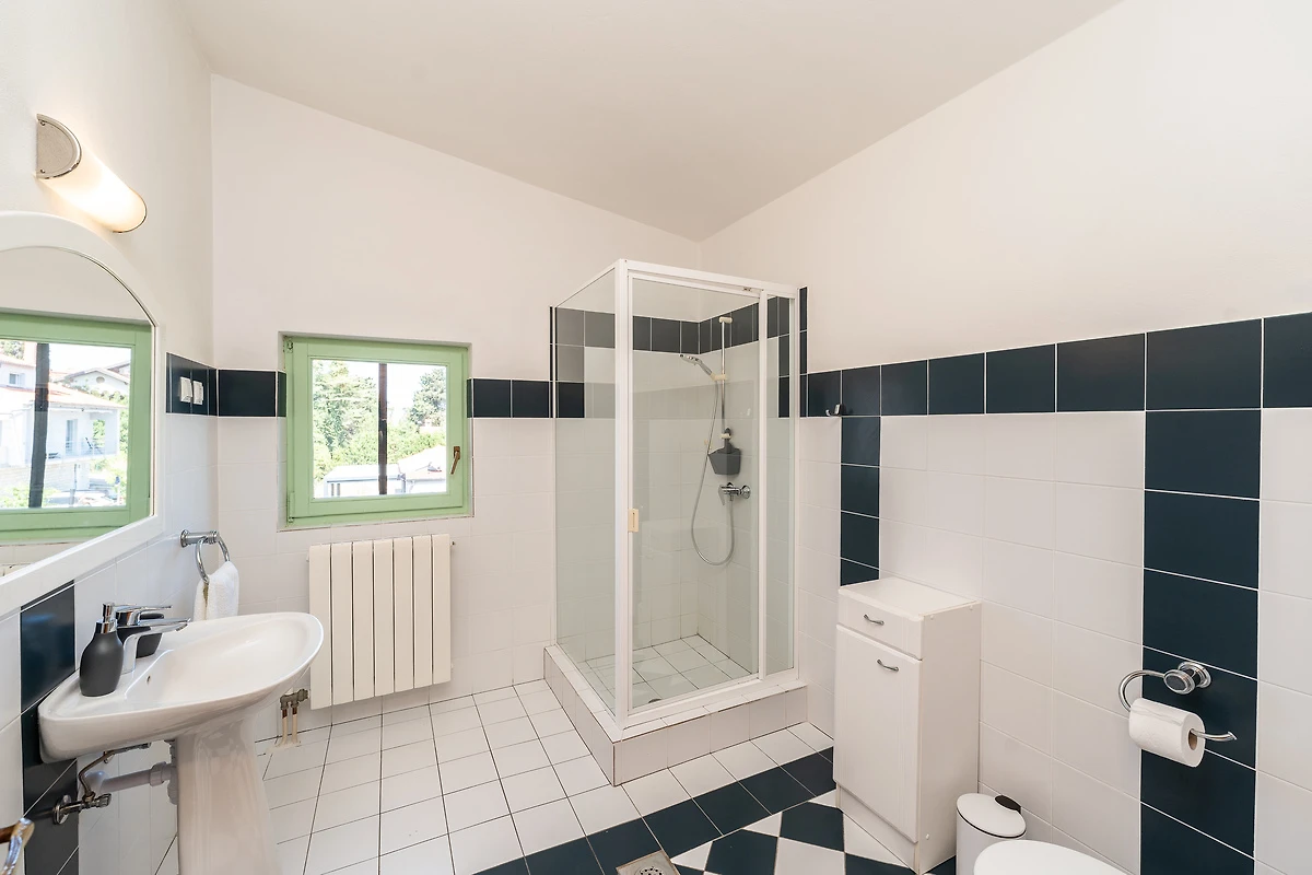 Una casa in stile mediterraneo con un bellissimo giardino offre due piani di ampi spazi abitativi, soggiorno e sala da pranzo, cucina completamente attrezzata, camera da letto e bagno al piano terra. 1° piano - camera principale con bagno privato e TV, altre 2 camere da letto con 1 bagno e area lettura. Tutte le stanze sono completamente climatizzate. Nell’area esterna del giardino c’è una stanza con lavatrice, piccolo frigorifero e toilette.