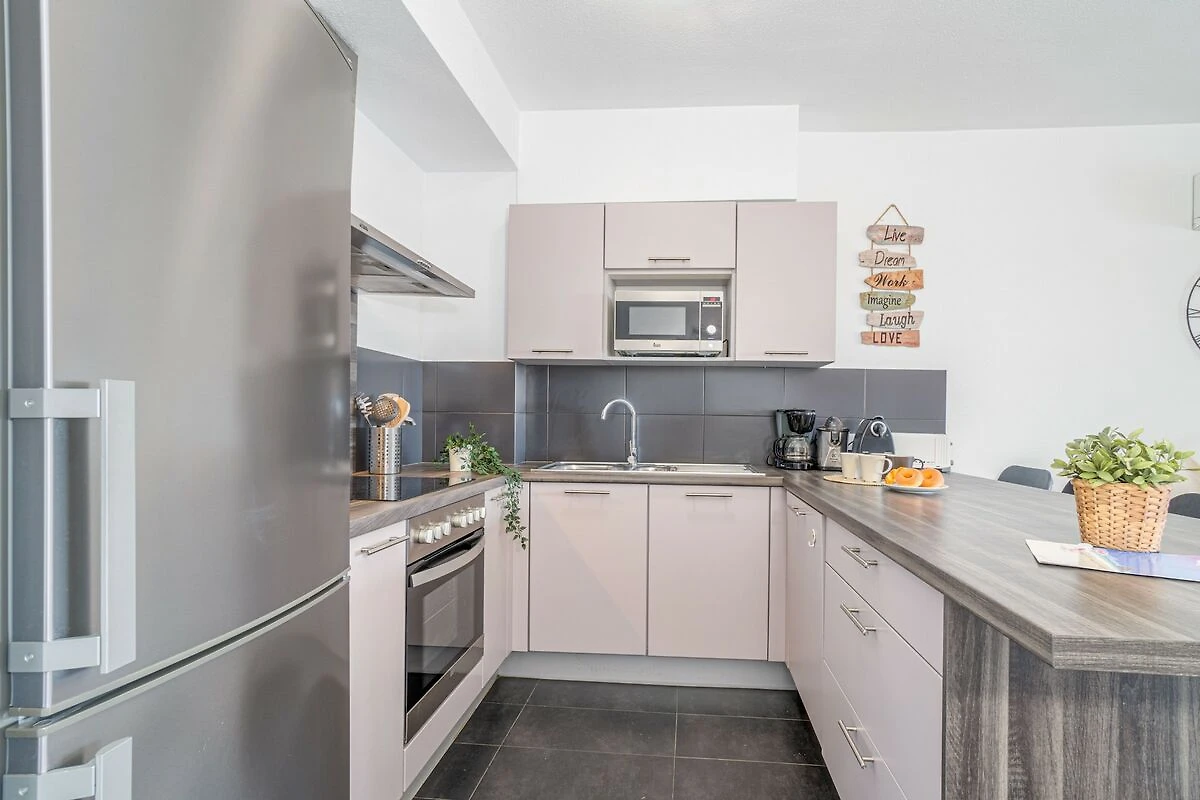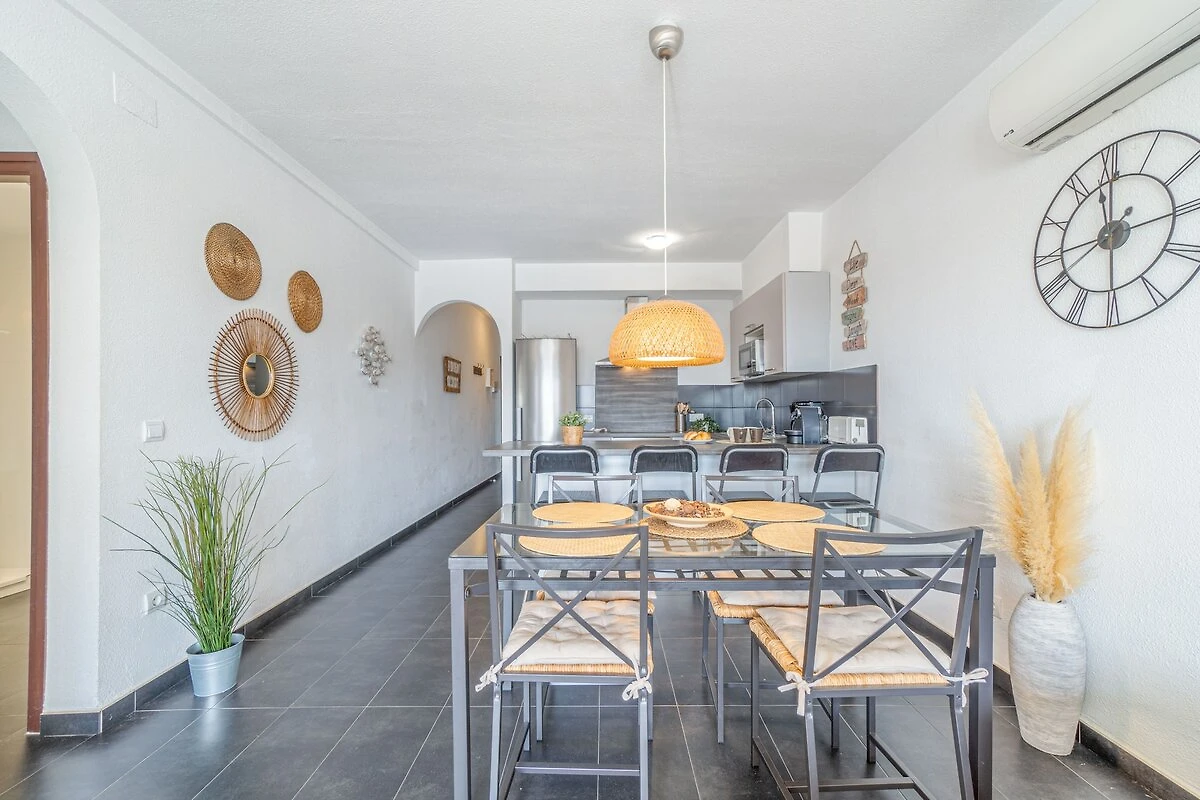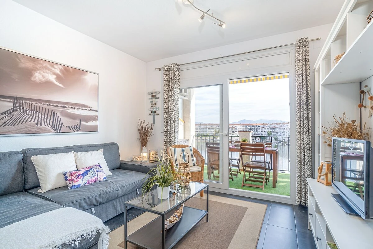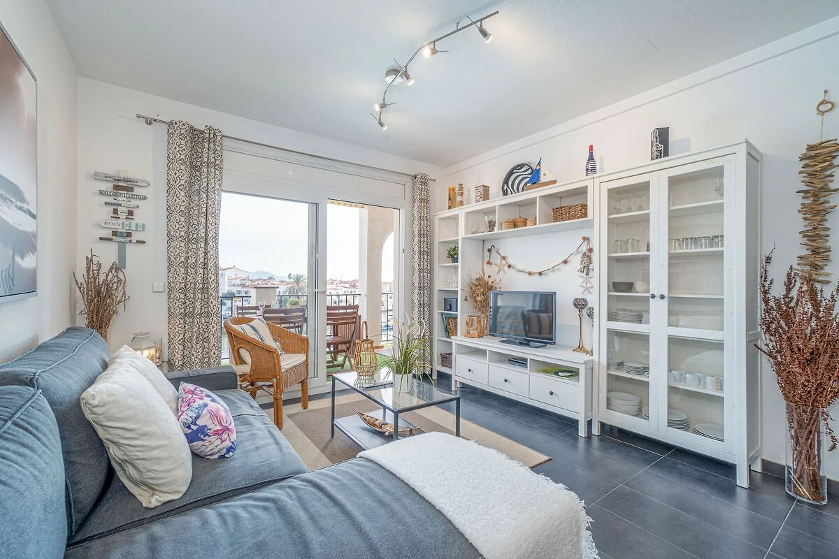 Il appartamento a Empuriabrava ha 2 camera(e) da letto e capacità per 6 persone. Alloggio di 79 m² confortevole e esterno, con vista alla montagna e al lago. Si trova a 700 m dal supermercato, 3 km dalla spiaggia di sabbia "Empuriabrava", 16 km dal campo di Golf "Peralada", 20 km dalla stazione dei treni "Ave/Tgv Figueres", 65 km dall'aeroporto "Girona" e si trova in una zona ideale per famiglie zone e dentro una urbanizzazione. Ha giardino arredato, terrazza, lavatrice, ferro da stiro, accesso internet (wifi), riscaldamento pompa di calore, aria condizionata solo nel salone, piscina in comune+bambini, Televisione, tv satellitare (Lingue: Spagnolo, Tedesco, Francese). La cucina americana, a vetroceramica, è attrezzata con frigorifero, microonde, forno, congelatore, lavastoviglie, stoviglie/posate, utensili da cucina, caffettiera, tostapane e bollitore.