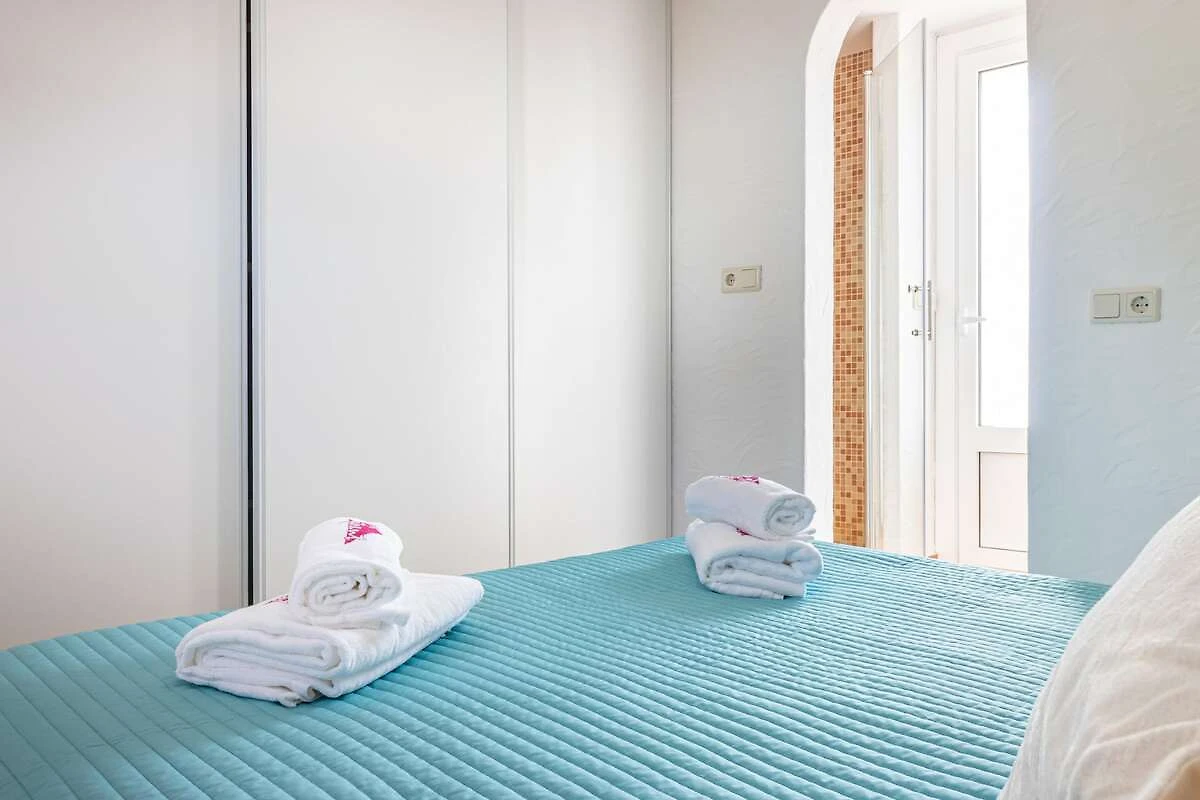 Internamente, l'appartamento è stato progettato con cura pensando al comfort e alla praticità. La cucina a pianta aperta è completamente attrezzata con elettrodomestici moderni, tra cui lavastoviglie, lavatrice e macchina per il caffè. La zona giorno, con aria condizionata e TV satellitare, include un divano letto matrimoniale, mentre la camera da letto offre un comodo letto matrimoniale. Sono inclusi anche Wi-Fi e parcheggio esterno.
