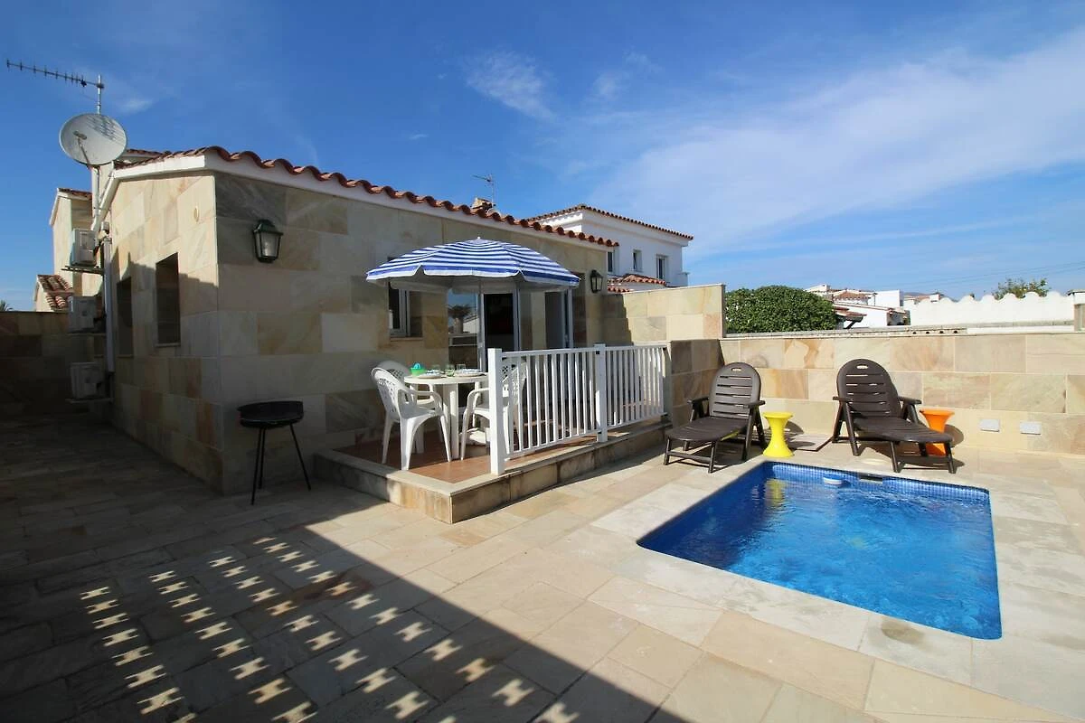 Immersa in una tranquilla zona residenziale di Empuriabrava, questa elegante villa con 2 camere da letto offre un accogliente rifugio per un massimo di 4 persone. Con un design moderno e una superficie compatta di 45 m², la casa dispone di piscina privata, giardino recintato e parcheggio all'aperto. La villa è ideale per coppie o piccole famiglie in cerca di una vacanza rilassante vicino alla costa, a soli 2 km dalla spiaggia sabbiosa e a 800 m dal supermercato più vicino.