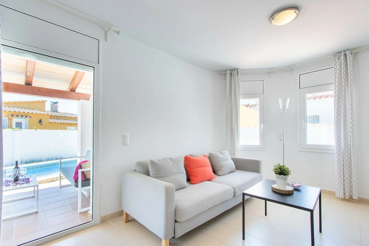 Questa moderna villa con 3 camere da letto a Empuriabrava offre un soggiorno elegante e confortevole per un massimo di 6 persone. Con 97 m² di superficie abitabile su un terreno di 355 m², la casa dispone di una piscina privata e di un giardino ben curato, perfetto per rilassarsi sotto il sole del Mediterraneo. Situata a soli 600 metri da un supermercato e a 2 km dalla spiaggia sabbiosa, la villa si trova in una tranquilla zona residenziale adatta alle famiglie.