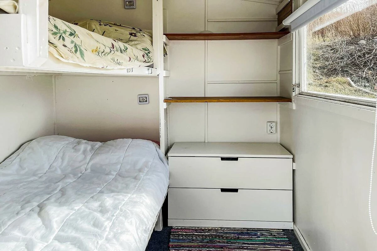 Soggiorno(brandina doppia), Salotto(2x letto a castello), Cucina separata(mobile cucina(2 fuochi), caffettiera, forno(mini), frigorifero, acqua dal pozzo), Bagno(lavabo, doccia, WC), congelatore(in comune col proprietario), riscaldamento(elettrico), mobili da giardino, parcheggio