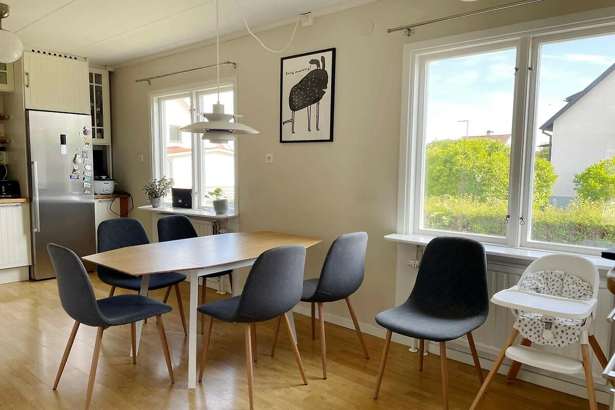 Soggiorno(letto pieghevole (1 pers.), TV(canali TV svedesi)), Cucina separata(stufa(induzione), caffettiera, forno, forno a microonde, lavastoviglie, frigorifero, congelatore(1-59L)), Soggiorno/camera da letto(brandina doppia, TV(canali TV svedesi), Netflix), Camera da letto(letto matrimoniale), Camera da letto(2x letto a castello), Camera da letto(letto matrimoniale), Camera da letto(2x letto singolo), Bagno(lavabo, doccia, WC), Bagno(lavabo, WC), balcone, mobili da giardino, parcheggio