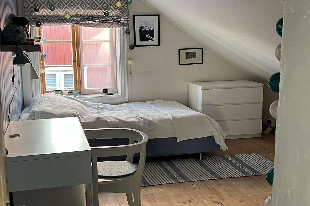 Sala da pranzo(20 m2), Cucina separata(mobile cucina(elettrico), cappa aspirante, caffettiera(per caffé americano), piastra per cialde, lavastoviglie, frigorifero, congelatore(1-59L), asciugabiancheria, lavatrice), Soggiorno/camera da letto(22 m2)(TV(canali TV norvegesi)), Camera da letto(letto matrimoniale), Camera da letto(letto matrimoniale), Camera da letto(2x letto singolo), Camera da letto(2x letto singolo), Bagno(sotto pavimento)(lavabo, doccia, WC), Bagno(vasca o doccia, lavabo, WC), riscaldamento(elettrico), mobili da giardino, barbecue, parcheggio, Netflix