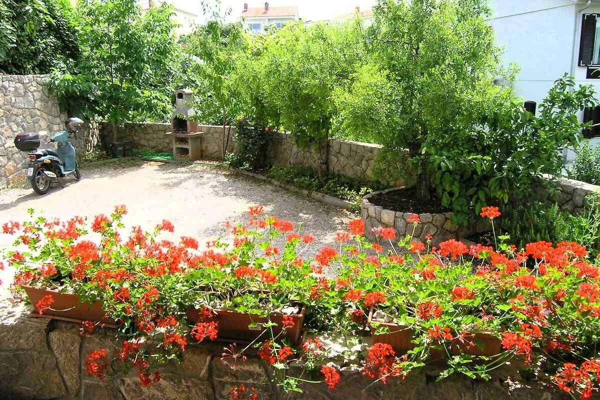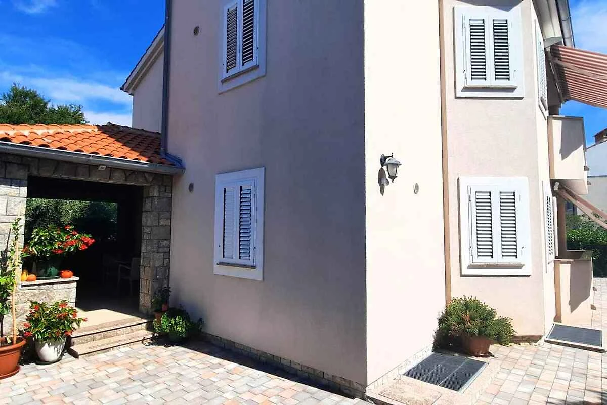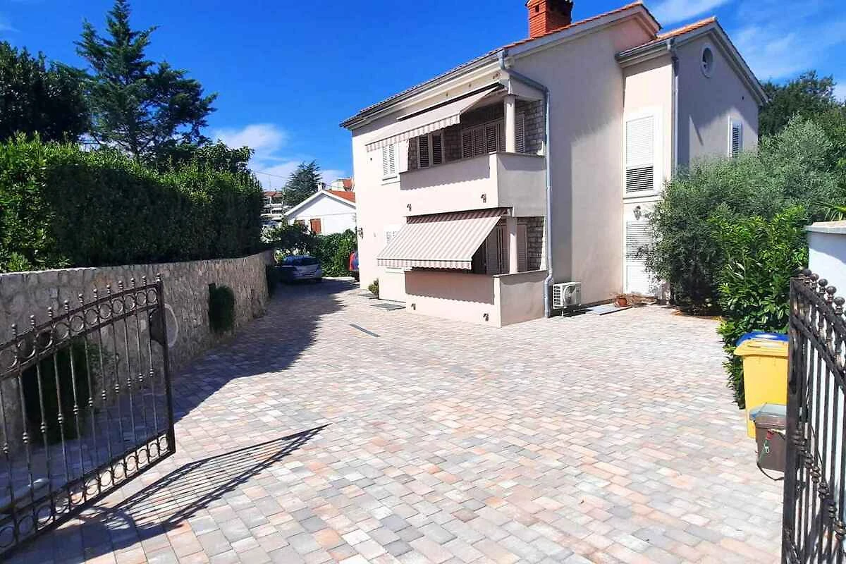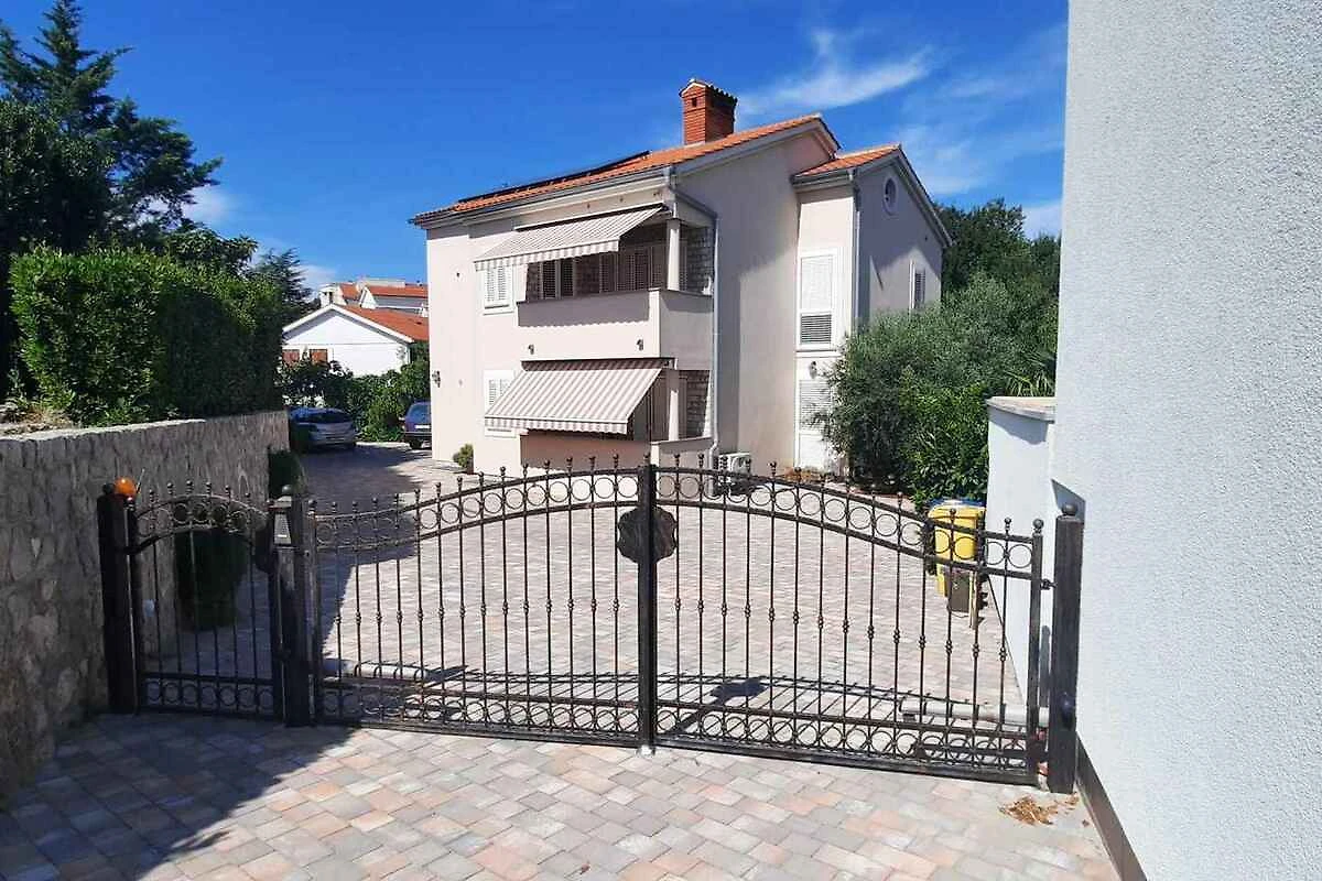 Krk. L' appartamento vacanze si trova in una proprietá chiuso, delimitata da una recinzione e un muro. Il proprietario non abita nella casa o nella proprietá. L'accesso avviene direttamente dalla strada principale. Parcheggio sulla strada davanti alla casa.