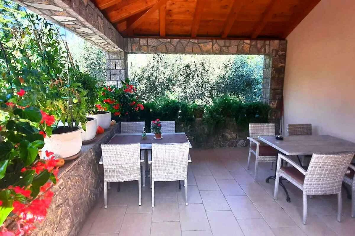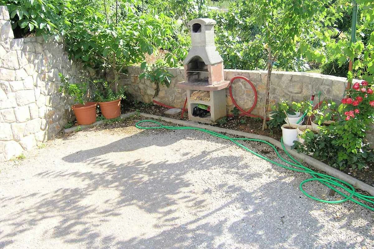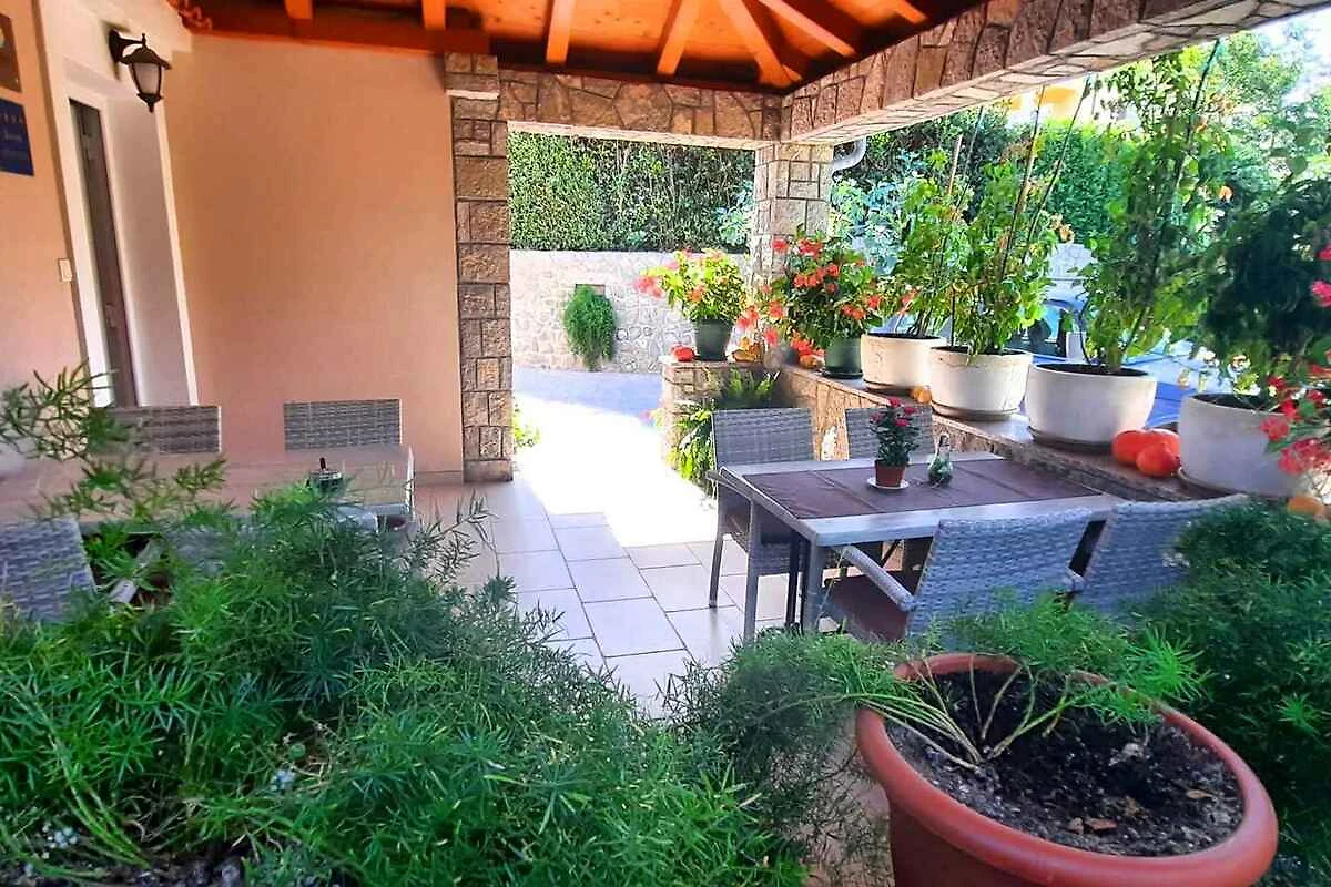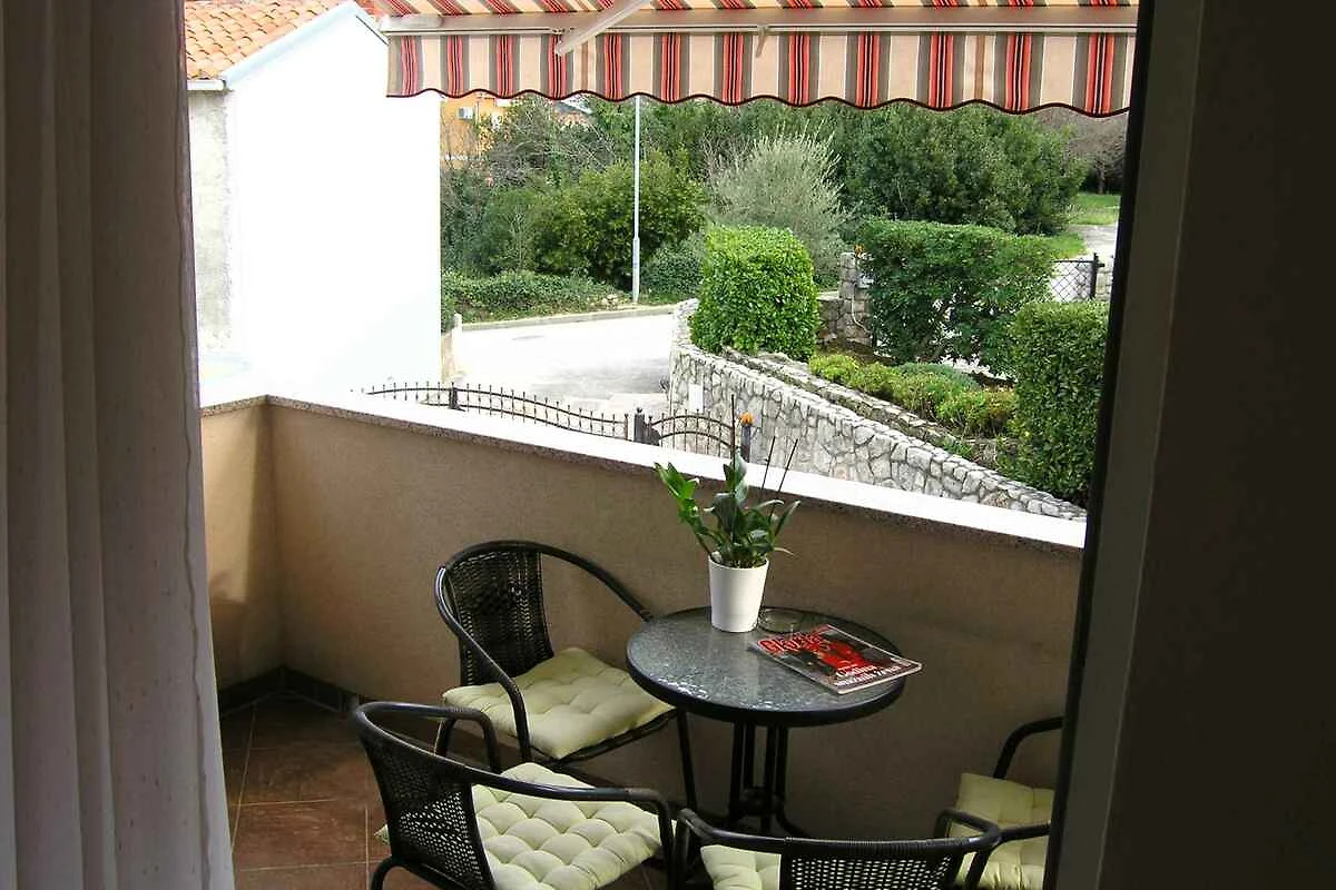 Krk. L' appartamento vacanze si trova in una proprietá chiuso, delimitata da una recinzione e un muro. Il proprietario non abita nella casa o nella proprietá. L'accesso avviene direttamente dalla strada principale. Parcheggio sulla strada davanti alla casa.
