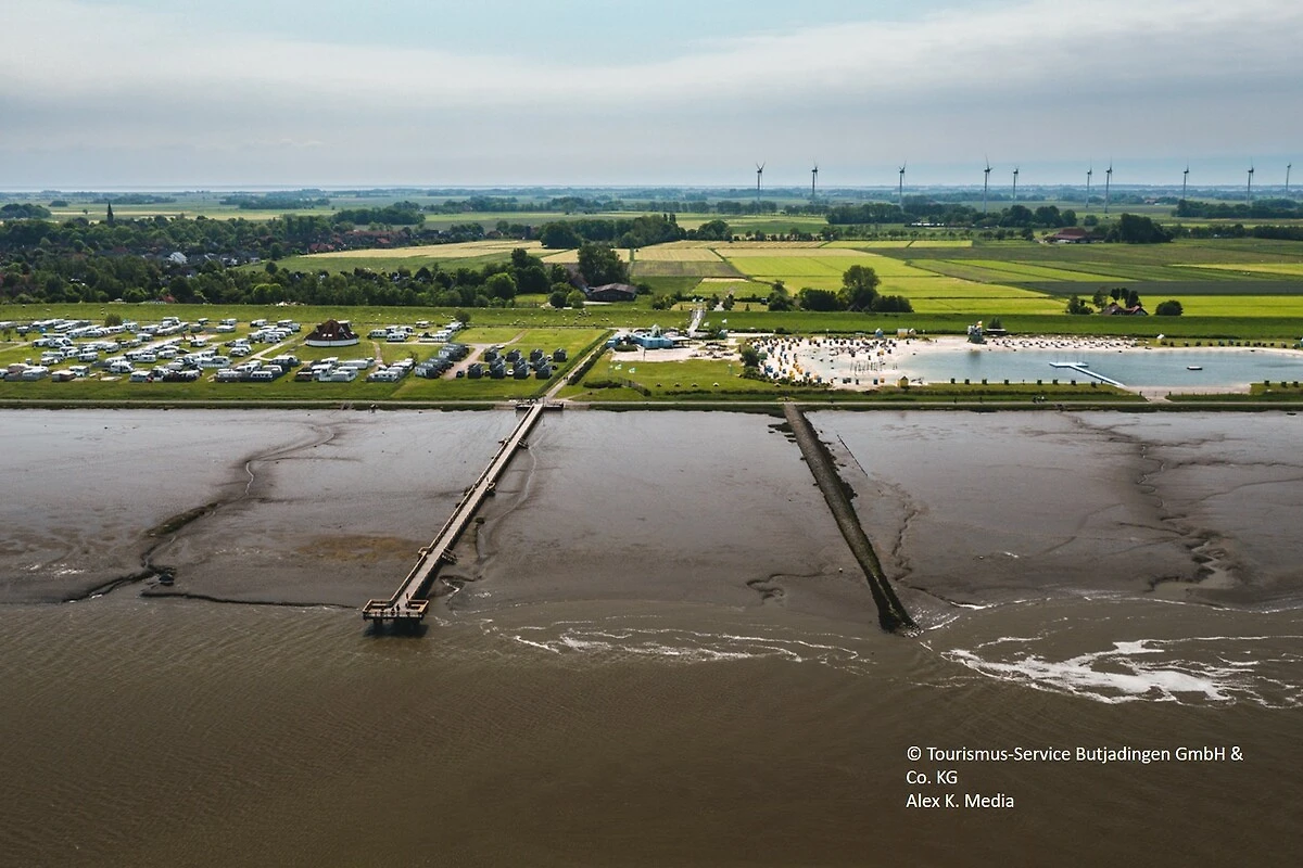 Una delle tipiche case del latte di Budjadingen (Melkhus) si può raggiungere in bicicletta lungo la diga in 20 minuti. Lì, in un ambiente curato con amore, ci sono latticini fatti in casa da mucche felici; il pagamento avviene sulla base della fiducia tramite una cassetta per il denaro.