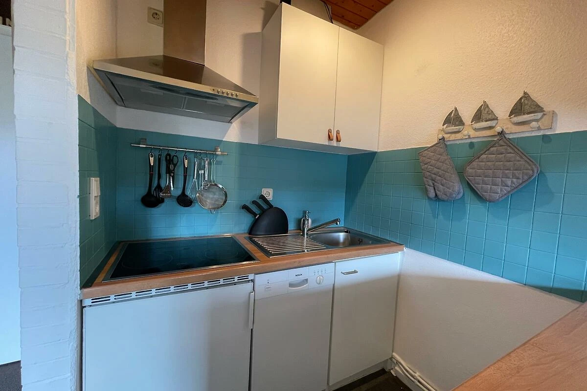 • Cucina completamente attrezzata con tutto ciò di cui avete bisogno: frigorifero-congelatore, lavastoviglie, macchine da caffè (filtro, Senseo e capsule), bollitore, tostapane, piastra per waffle, microonde, mixer & co. • Camera matrimoniale: letto doppio (180x200), molto spazio per riporre, zanzariera e tapparelle