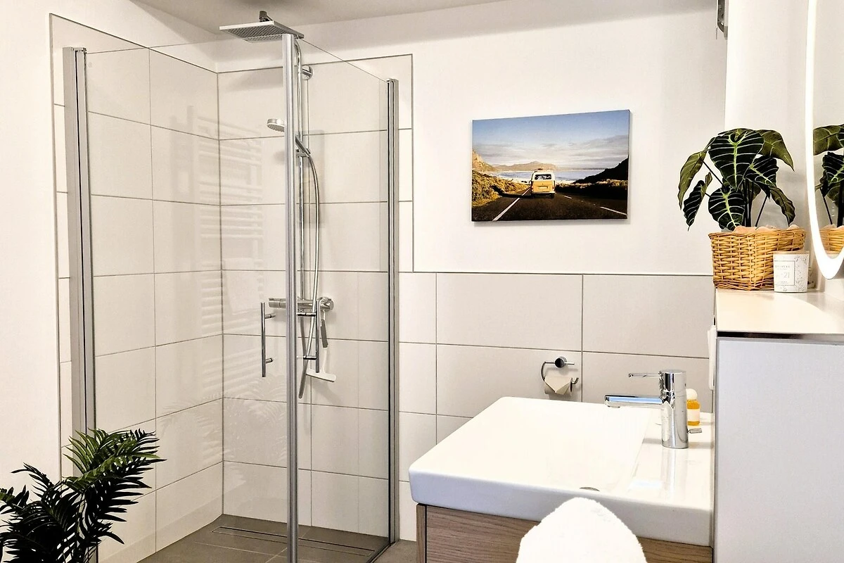 L'appartamento di 55 m² dispone di un luminoso soggiorno con divano letto per un terzo ospite e zona pranzo dedicata, una camera da letto separata con un comodo letto matrimoniale, una cucina moderna e un bagno con vasca/doccia, lavabo e WC. Il balcone privato offre un angolo tranquillo per godersi l'aria frizzante di montagna.
