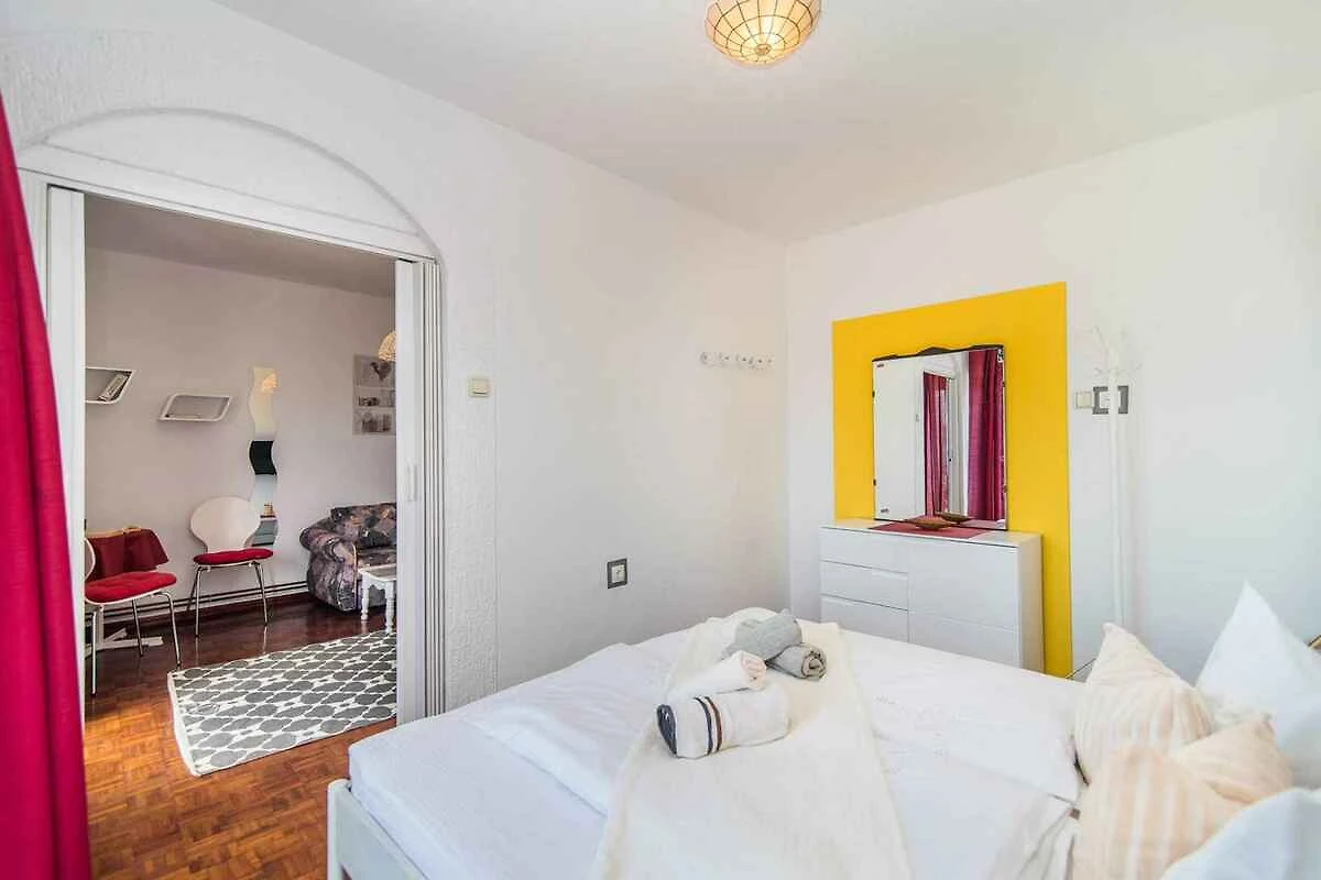 L' appartamento vacanze si trova in un appartamento casa ed è arredato moderno e funzionale. La proprietà si trova in una zona residenziale, in centro città. Anche a causa della vista dalla struttura sul mare e tranquilla e soleggiata posizione, il domicilio è popolare. Attrezzature in comune: prato per prendere il sole, ombrellone, lettino da sole, possibilità di grigliare, terrazza e mobili da giardino.