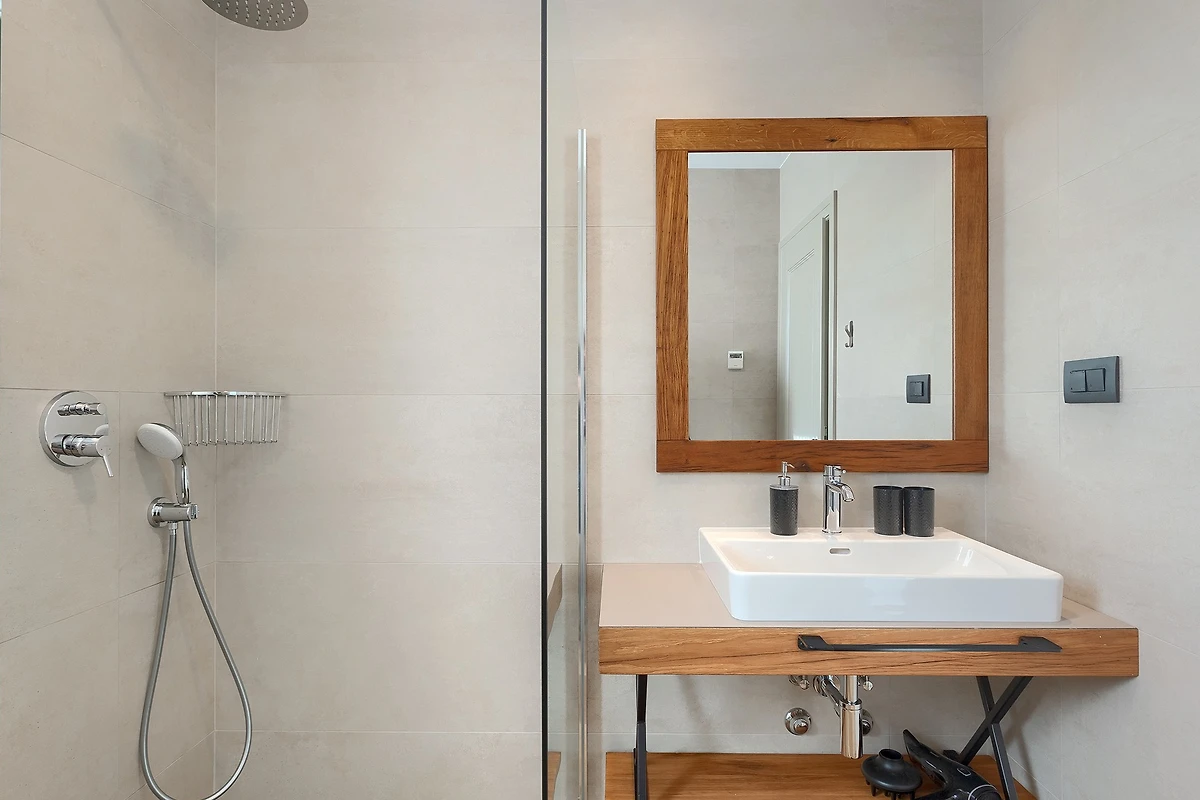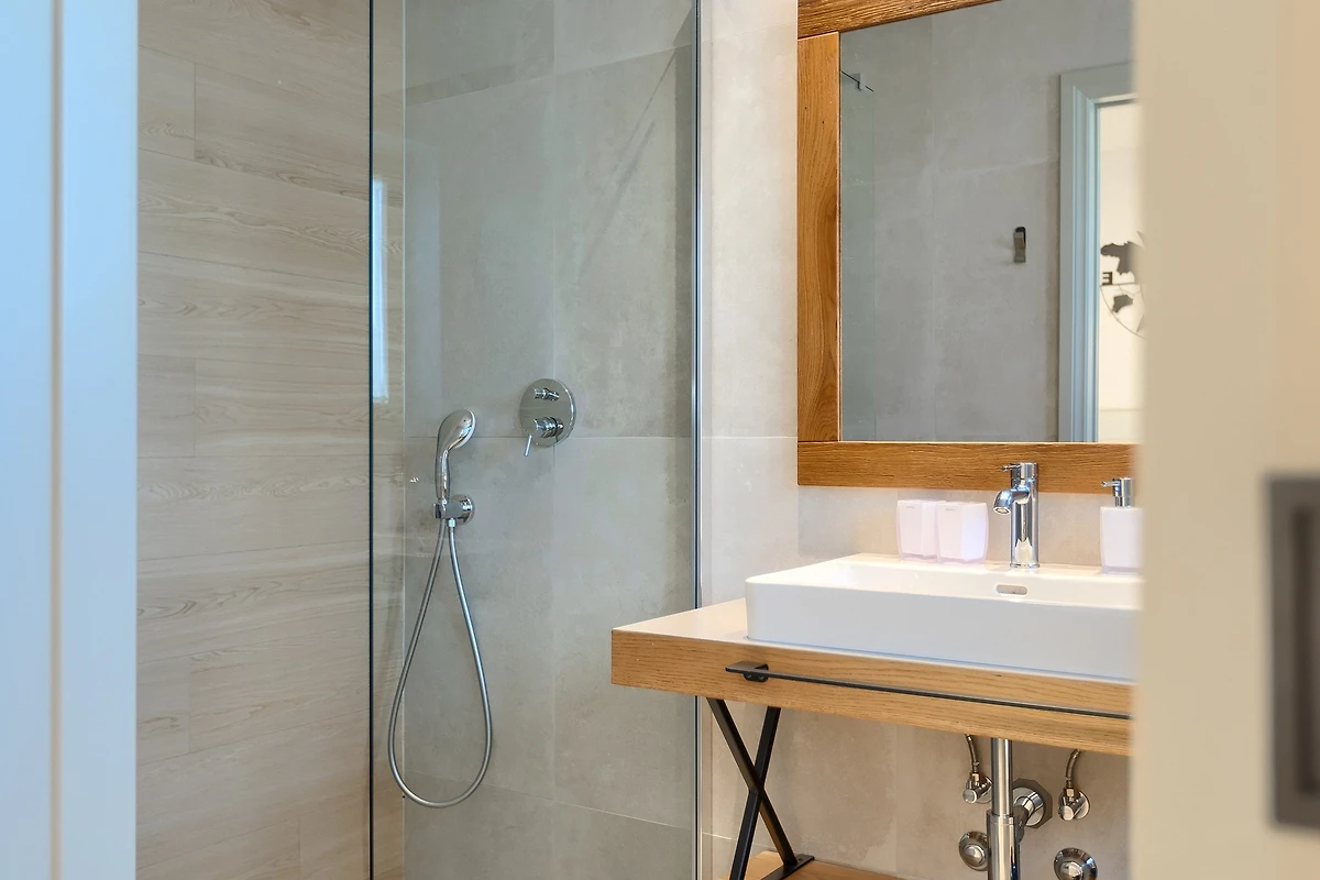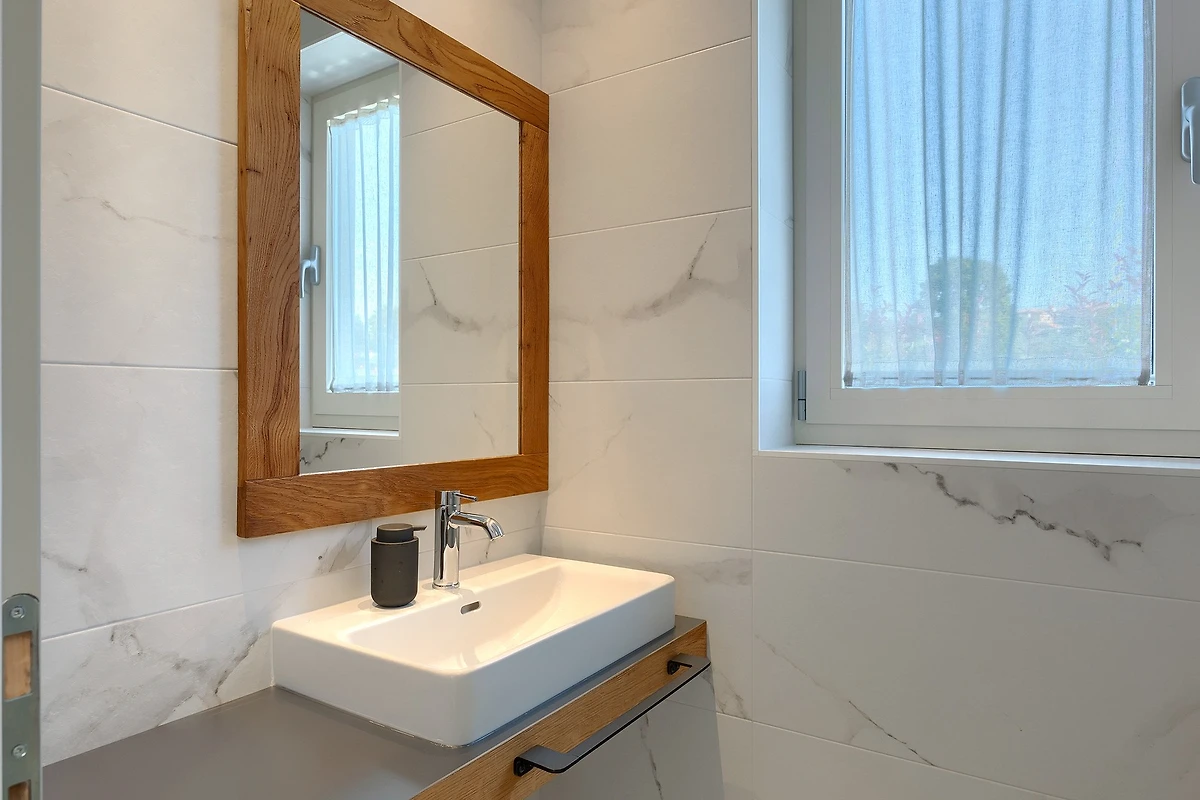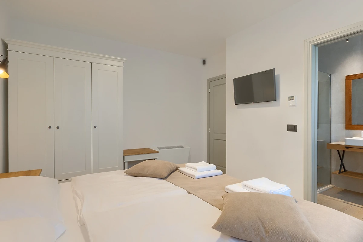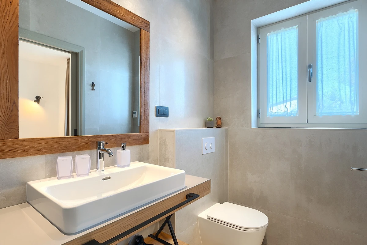 Al piano terra di Villa Grgo si trovano due delle quattro camere da letto e due bagni. Le restanti due camere da letto e due bagni si trovano al primo piano della villa. Le camere da letto, oltre al letto matrimoniale, contengono anche una scrivania, un televisore e un armadio. Una particolarità è il balcone al secondo piano, che collega le due camere da letto e contiene un piccolo angolo per riposare e godersi il panorama. Ciascuno dei quattro bagni privati è dotato di cabina doccia, lavandino e wc. Ogni bagno è dotato di riscaldamento a pavimento e, oltre agli asciugacapelli, sono disponibili anche prodotti per l'igiene personale.
