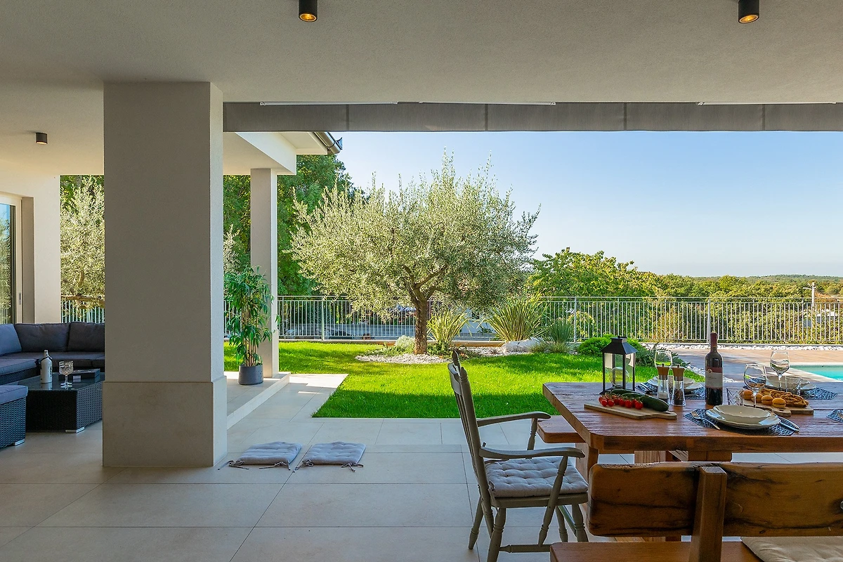 Il cuore della penisola istriana e un simbolo della bellezza della vita istriana - Tinjan. Epiteti che sicuramente invitano a una vacanza nel centro dell'Istria. La tradizione e le usanze sono custodite da anni a Tinjan e la combinazione di tradizione e modernità si riflette in ville come Villa Grgo. Villa Grgo è stata costruita in una parte meno popolata del centro dell'Istria, ma comunque nelle immediate vicinanze di tutti i servizi necessari per le vacanze.