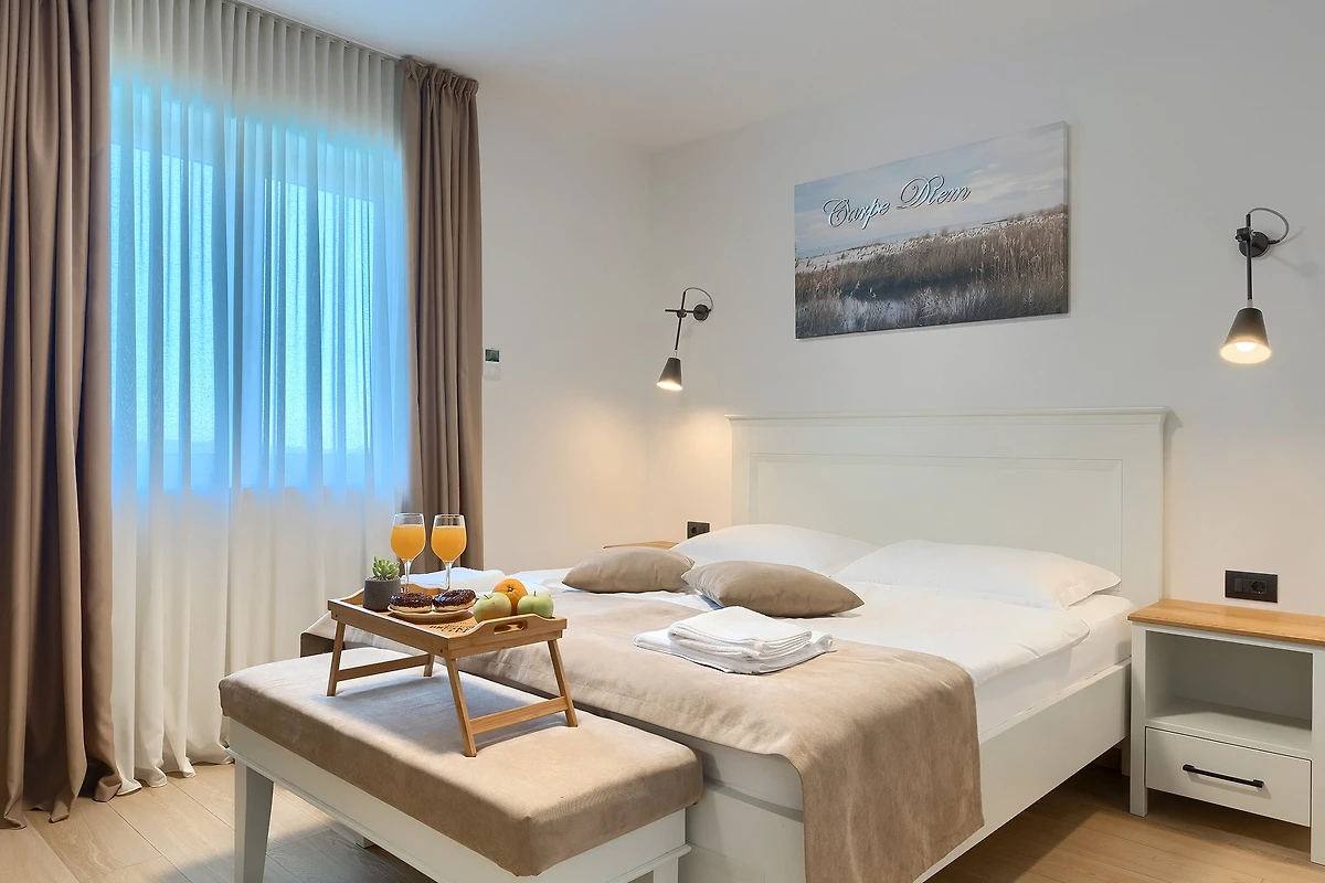 Villa Grgo ha 4 camere da letto e 4 bagni, oltre a un soggiorno aperto, cucina e molti accessori, su ben 240 m². Questa villa può ospitare 10 persone e il piano terra della villa è adattato per persone con disabilità. I servizi aggiuntivi includono un'area benessere con piscina idromassaggio e sauna finlandese, nonché una piscina all'aperto di 40 m².