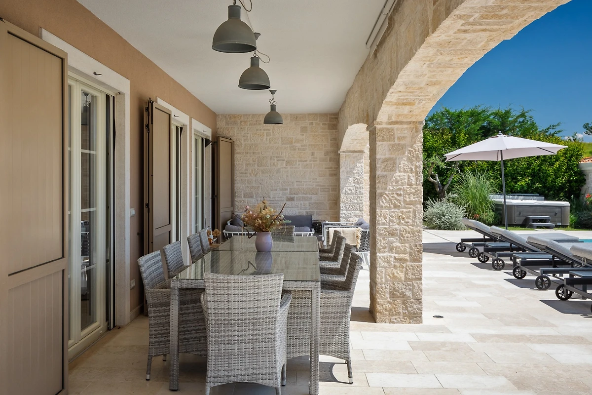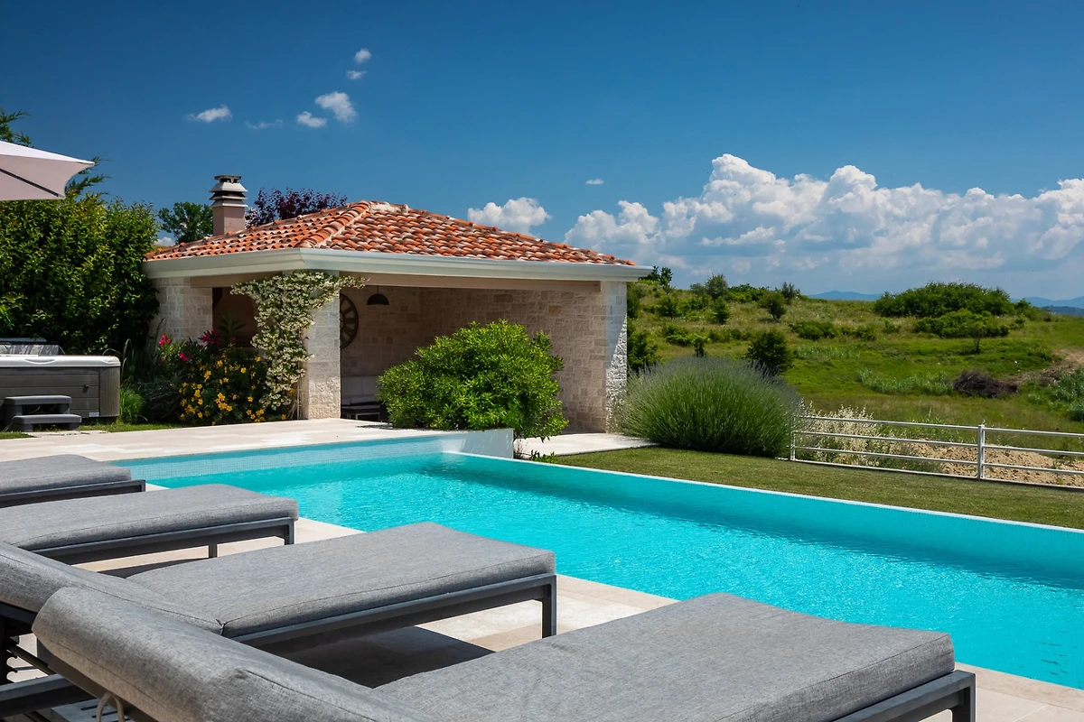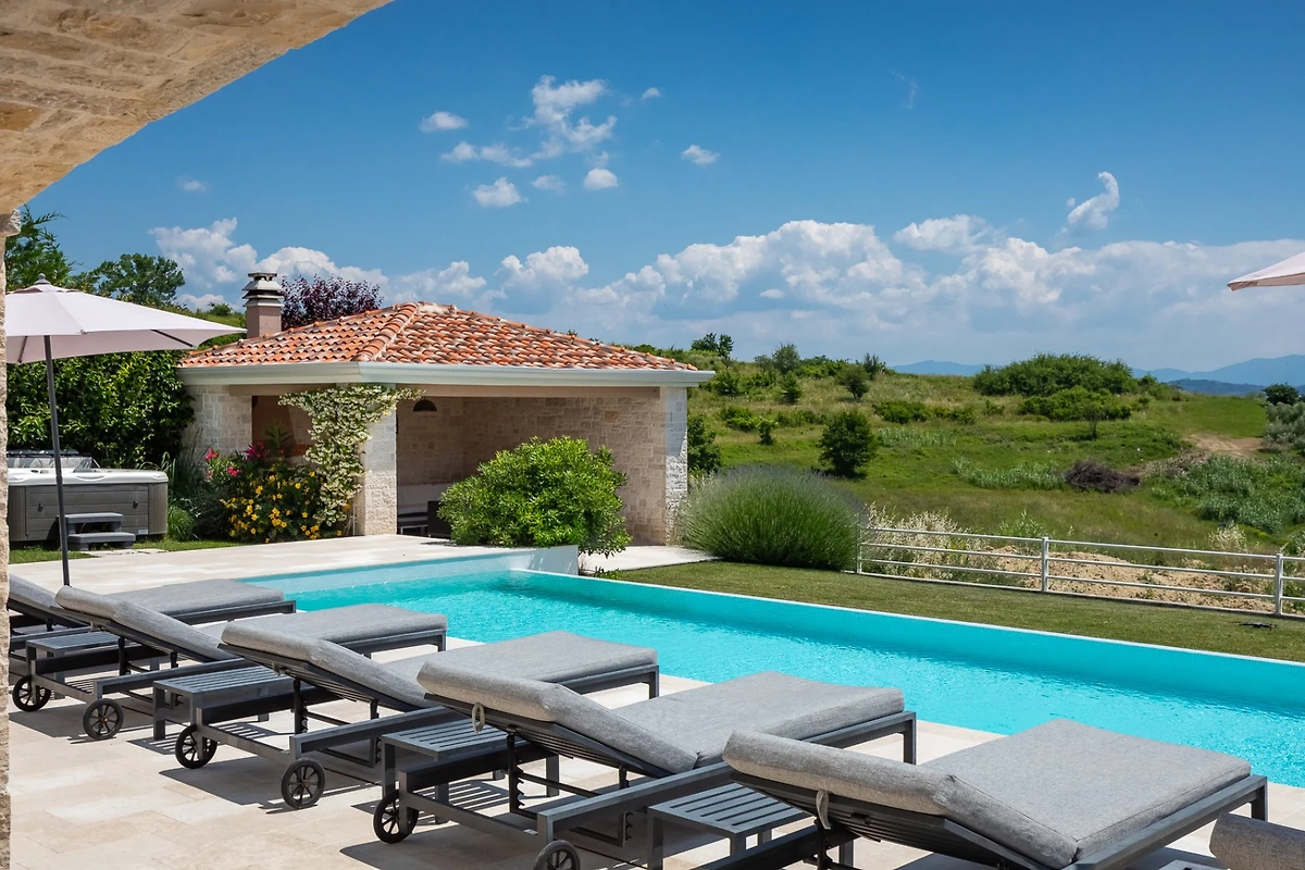 Villa Monte si trova nel pittoresco villaggio di Vižinada, nella valle del fiume Mirna. La villa offre una vista eccezionale sulle colline circostanti. È una combinazione di lusso e comfort. Villa Monte sarà il vostro nuovo luogo preferito per una pausa dal trambusto della città, con 5 camere da letto e 5 bagni, riscaldamento a pavimento in tutte le stanze e una sauna e una vasca idromassaggio con vista sulle colline circostanti.