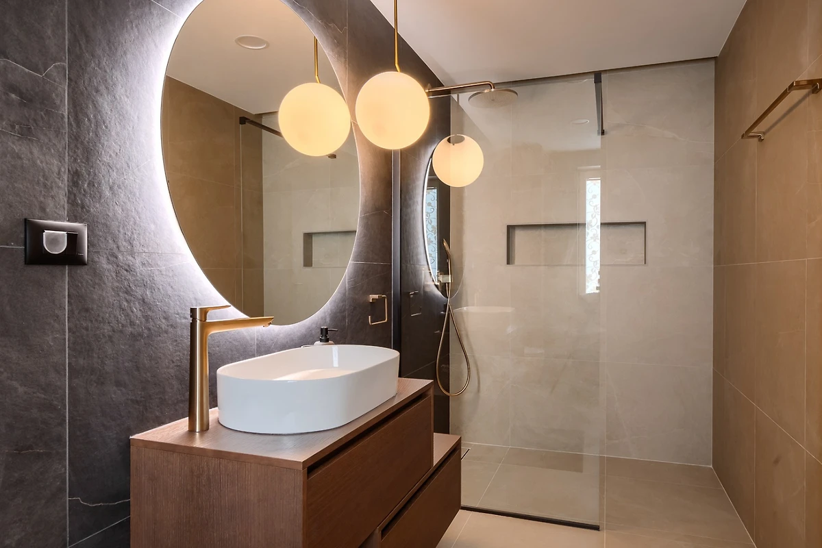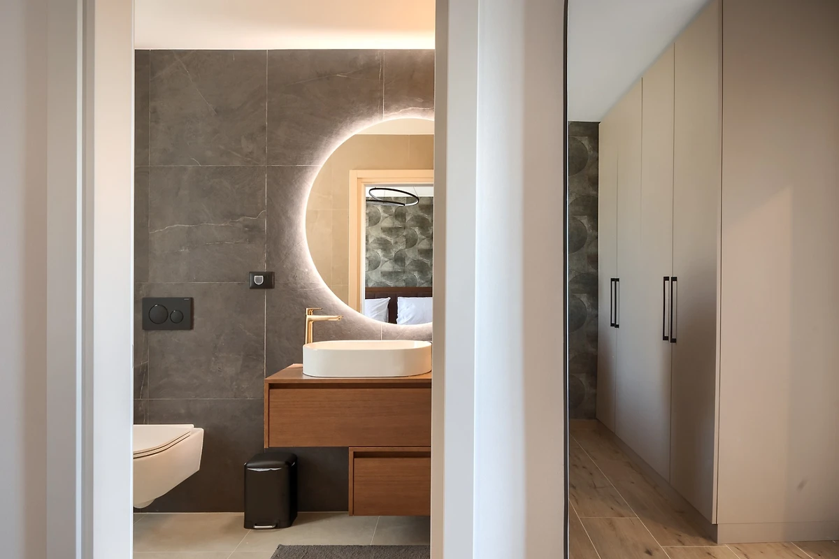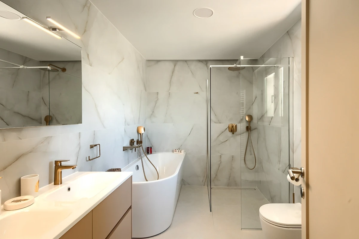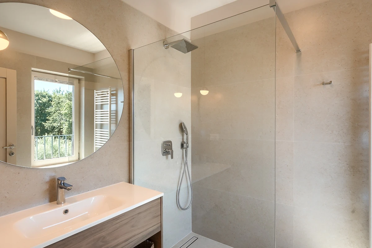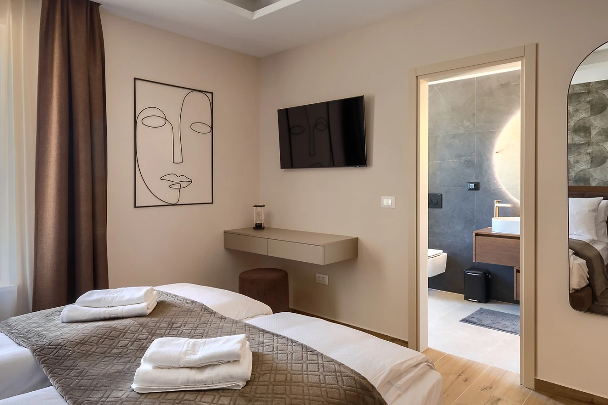 Le camere da letto con aria condizionata sono disposte con 1 al piano terra e le altre 3 al primo piano. Ognuna delle 4 camere da letto ha un bagno privato. Anche in questo caso, i toni neutri della terra creano un'atmosfera rilassante e, per un comfort totale, tutte le camere e i bagni sono dotati di riscaldamento a pavimento. La camera da letto al piano inferiore ha accesso alla piscina e una delle camere da letto al piano superiore ha un proprio balcone con comode sedie e tavolo se si desidera godere di una vista idilliaca. I bagni emanano un senso di lusso moderno e includono articoli da toilette, asciugacapelli e accappatoi. Uno dei bagni al primo piano si distingue perché, oltre alla cabina doccia presente in tutti i bagni, dispone anche di vasca da bagno, bidet e due lavabi.