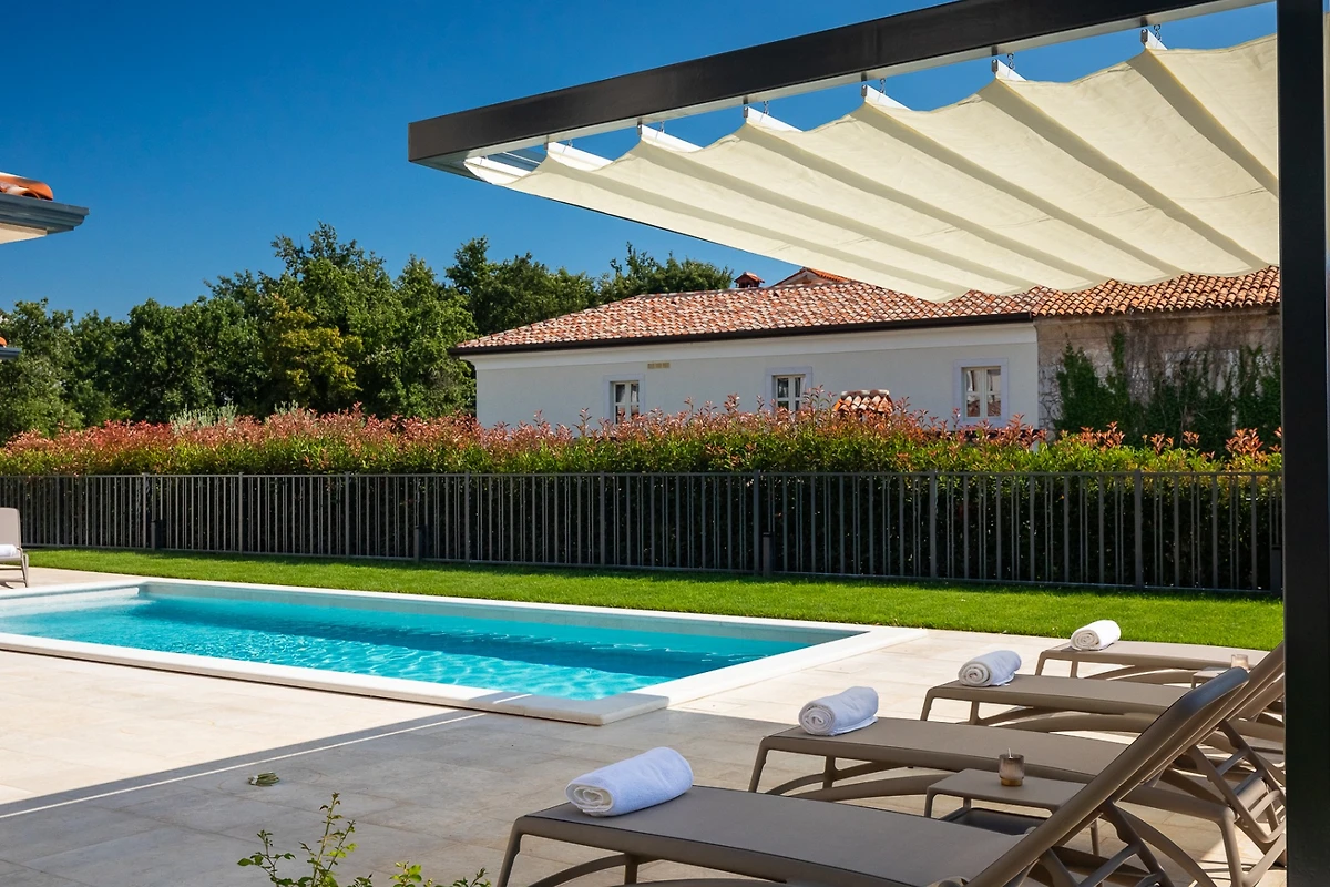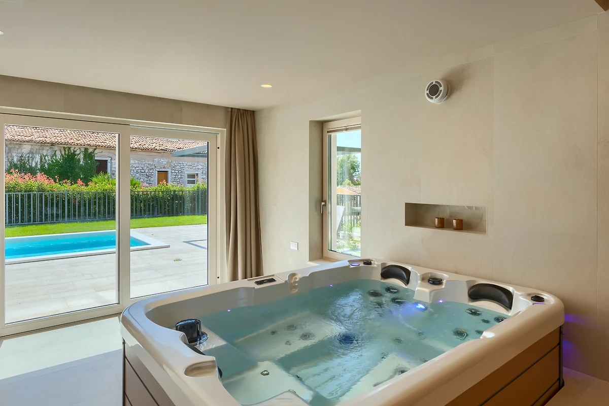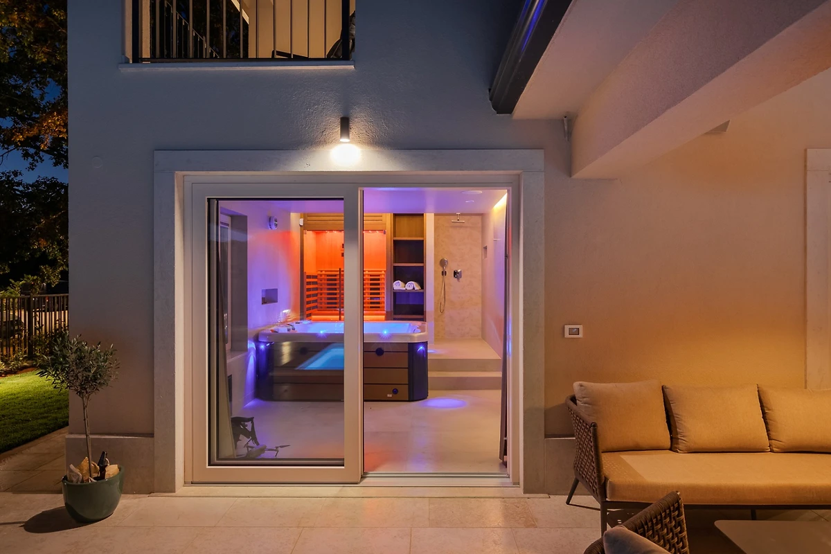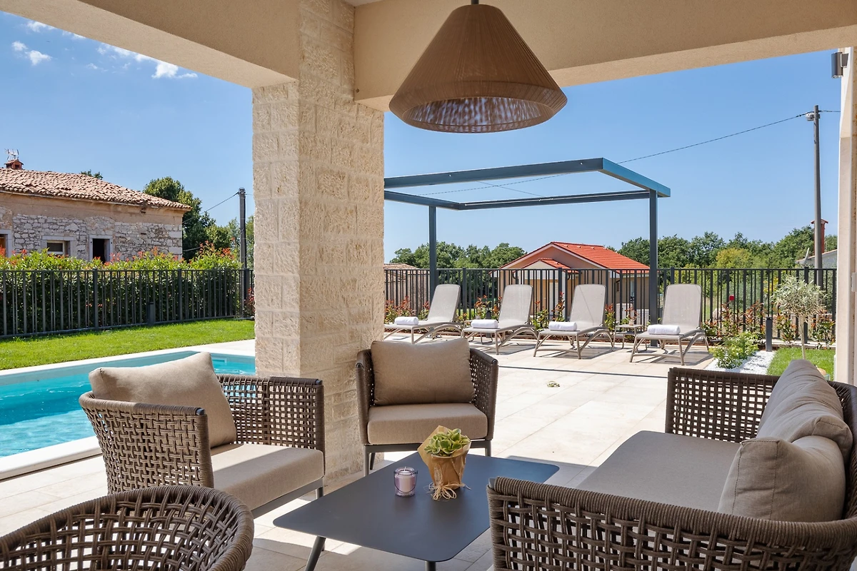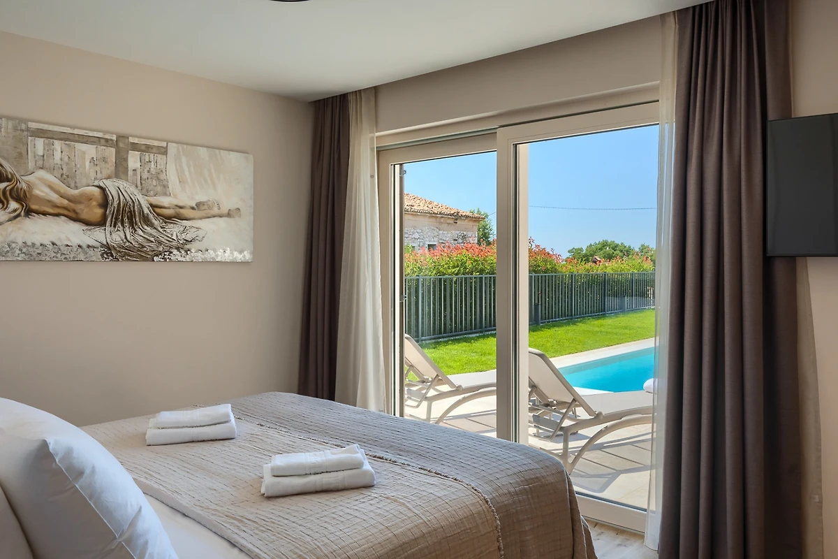 Villa Blagdan si trova nel tranquillo villaggio di Nova Vas, nell'entroterra della penisola e vicino alla città di Poreč. La villa dispone di 4 camere da letto e 4 bagni e può ospitare fino a 8 persone. Con 224 m² di interni di lusso, un imponente giardino con piscina e una area benessere, diventerà la vostra nuova destinazione per le vacanze che avete sempre desiderato.
