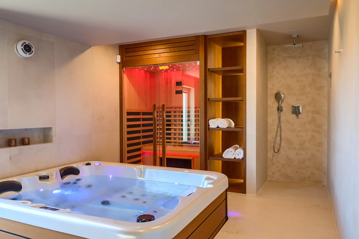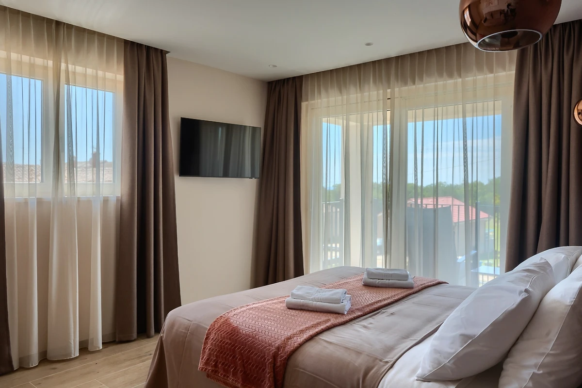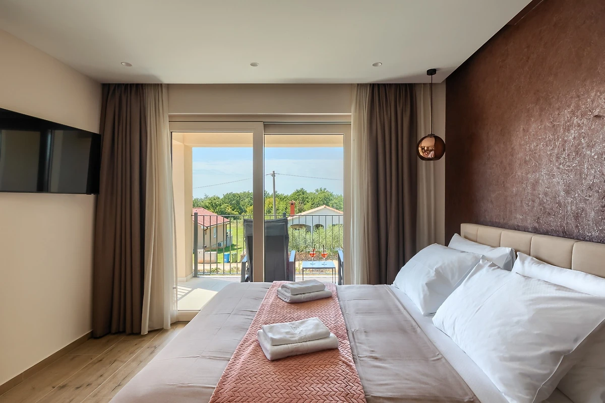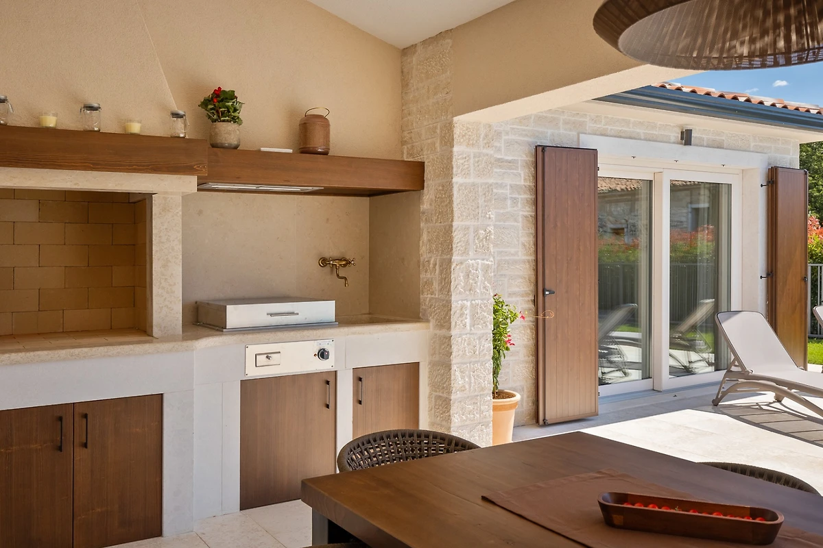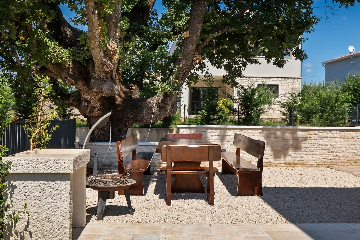 Villa Blagdan si trova nel tranquillo villaggio di Nova Vas, nell'entroterra della penisola e vicino alla città di Poreč. La villa dispone di 4 camere da letto e 4 bagni e può ospitare fino a 8 persone. Con 224 m² di interni di lusso, un imponente giardino con piscina e una area benessere, diventerà la vostra nuova destinazione per le vacanze che avete sempre desiderato.