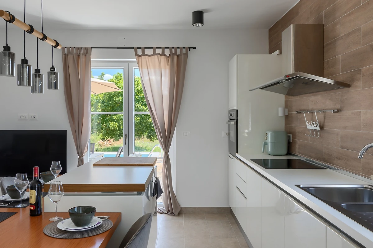 Villa Casa Stefani si trova nel verde del piccolo villaggio di Kaštel, vicino a Buie (Buje). Questa villa con 2 camere da letto è caratterizzata da un esterno semplice e contemporaneo e da interni moderni. La superficie di 77 m² è ideale per una piccola famiglia o un gruppo di amici, e sono benvenuti anche gli animali domestici.