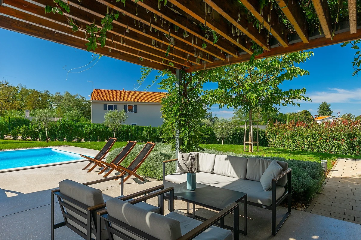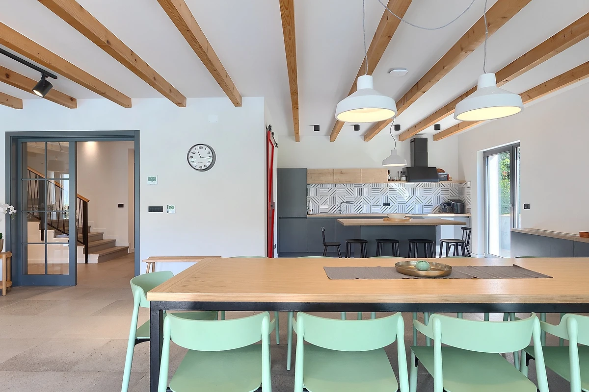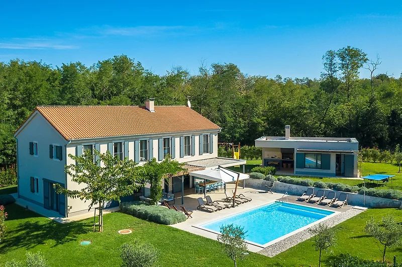 Villa Povetica si trova nel nord-ovest dell'Istria, non lontano dal villaggio di Vižinada. Questa villa con 6 camere da letto e piscina è progettata per 12 persone, il che la rende ideale per la riunione di gruppi più numerosi di amici o di famiglie. Circondata da alberi e verde, con un giardino di 1419 m² e numerose zone per il relax, vi offrirà una vacanza che finora avete solo sognato. Se avete un animale domestico, abbiamo buone notizie: questa villa sarà felice di ospitare anche il vostro amico a quattro zampe.