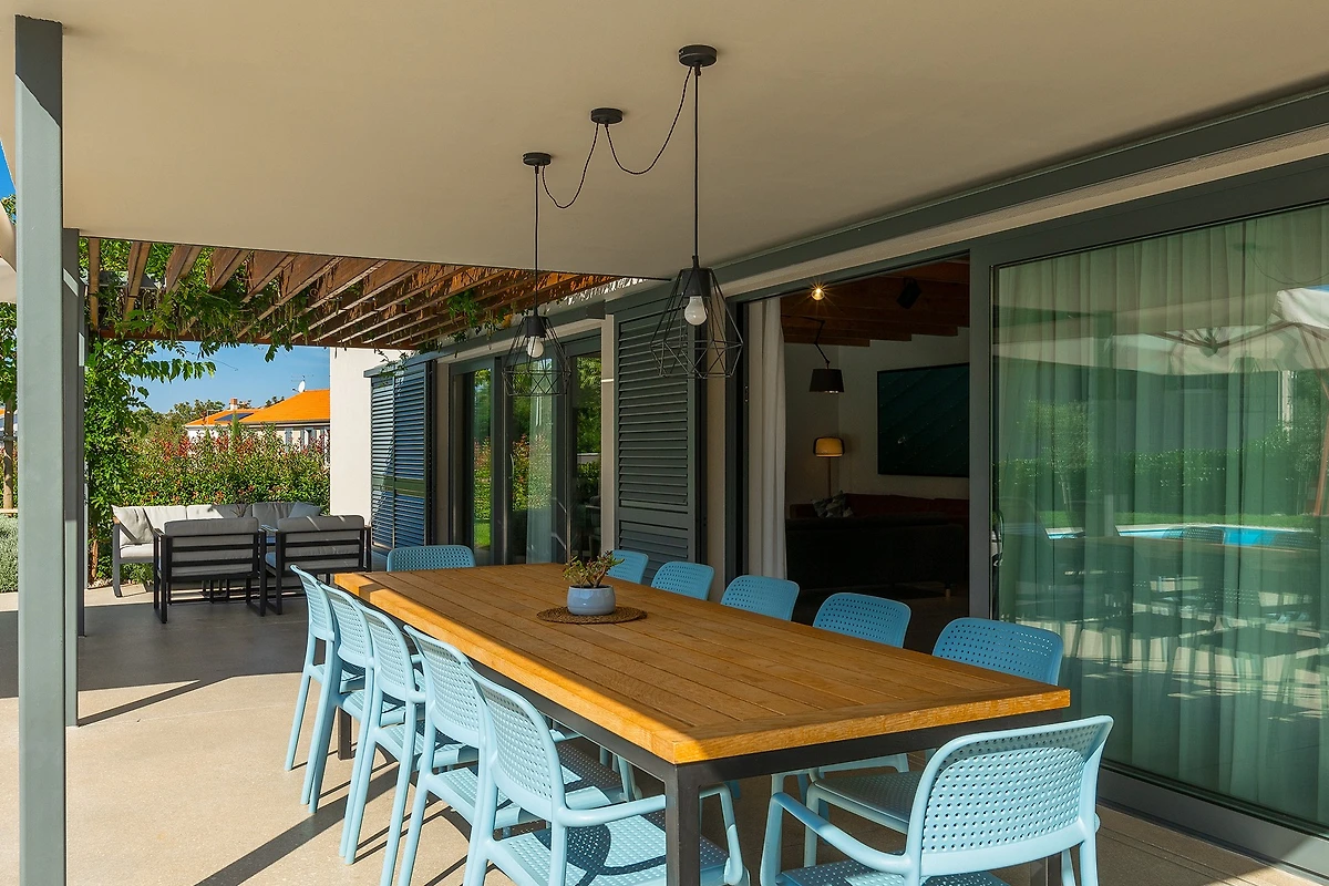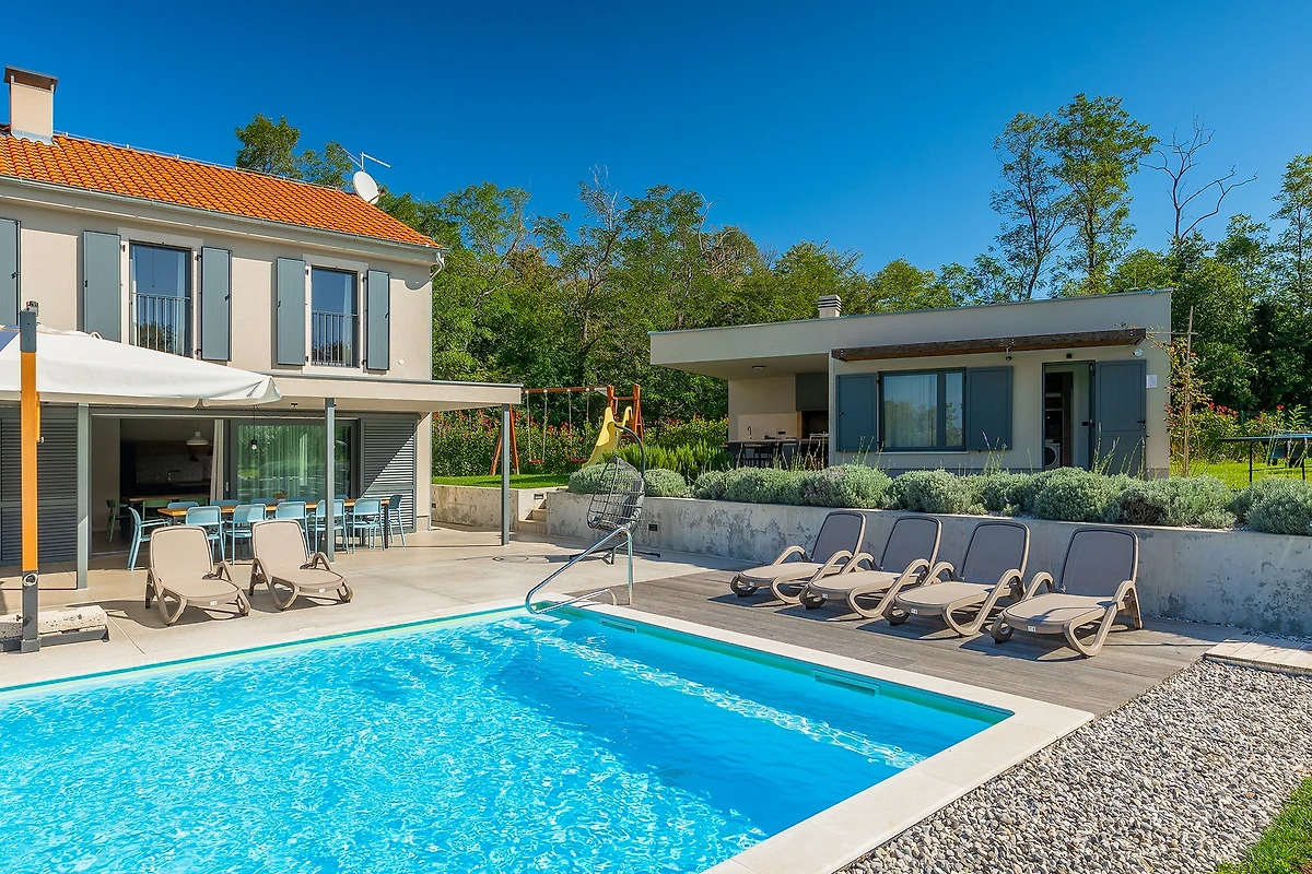 Oltre agli interni raffinati e arredati con gusto, Villa Povetica vi incanterà con il suo ampio e curato giardino con piscina. Accanto alla piscina di 50 m² ci sono 8 lettini per prendere il sole e rilassarsi, mentre sulla terrazza coperta troverete una zona pranzo all'aperto e un'area relax. Per rendere completa la vostra vacanza estiva, c'è anche una cucina estiva con barbecue. I bambini apprezzeranno l'ampio cortile e il parco giochi, e ci sono anche un tavolo da ping pong, un set da badminton e giochi da tavolo per far divertire tutta la famiglia.