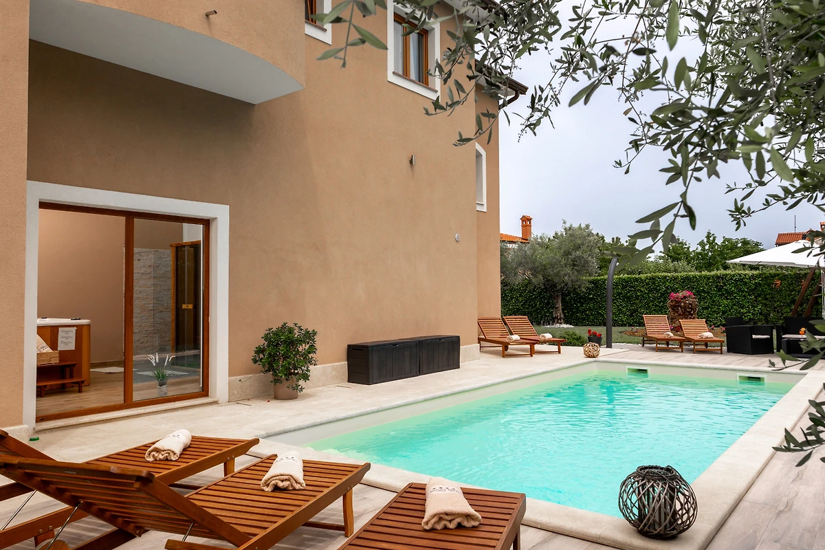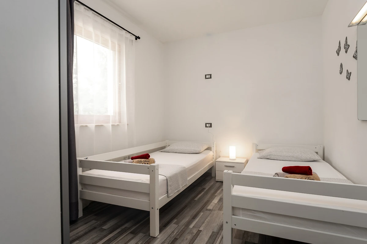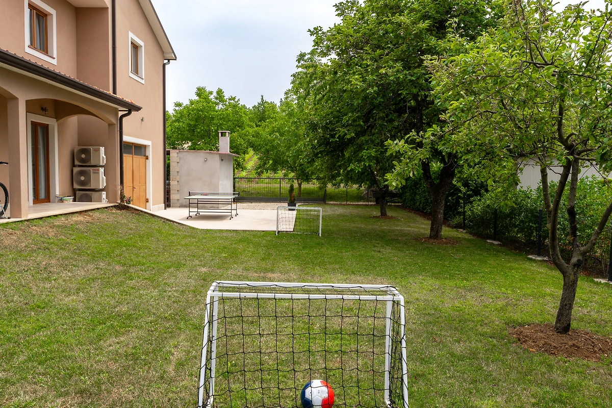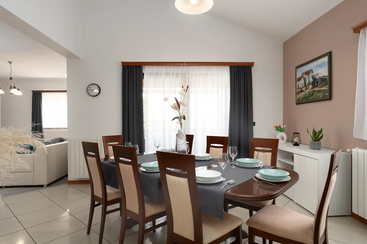 Villa Dani si trova nel villaggio di Vižinada, nell'entroterra dell'Istria. Questa villa con 6 camere da letto dispone di 2 appartamenti con ingressi separati. Può ospitare fino a 12 persone, quindi è ideale per una vacanza con un gruppo di amici o per più famiglie piccole con bambini. Sebbene la villa sia circondata da altre case, la parte più importante - la terrazza esterna con piscina - è completamente recintata e si affaccia sulla campagna boscosa. Questo garantisce la massima privacy e il completo relax in un tranquillo ambiente rurale.