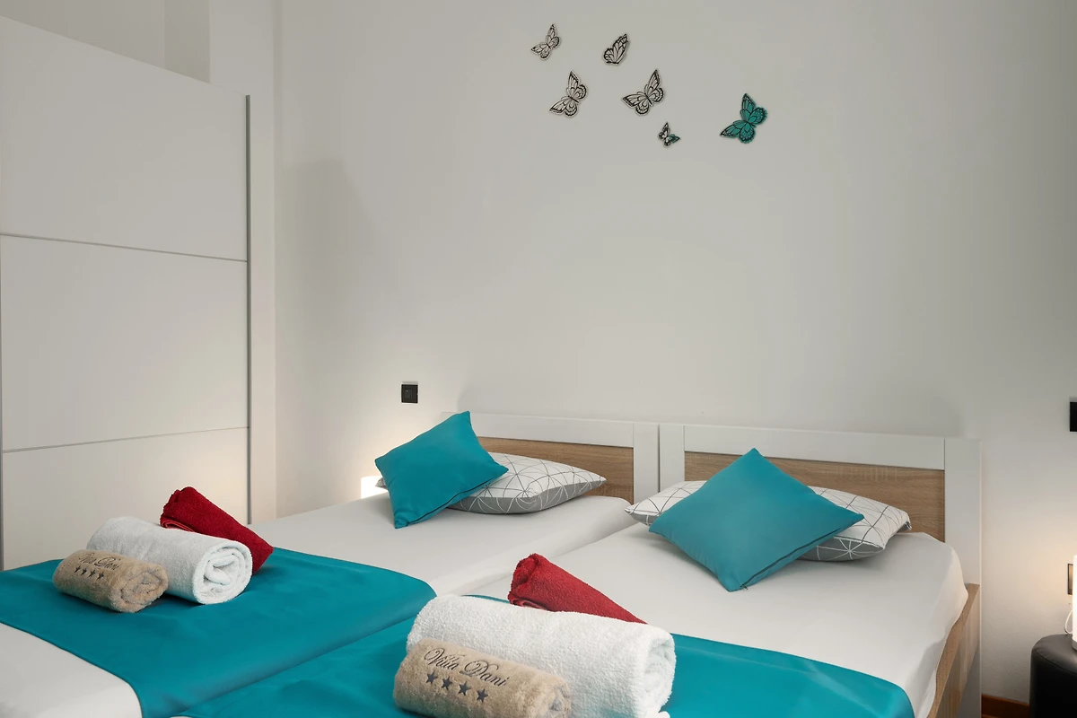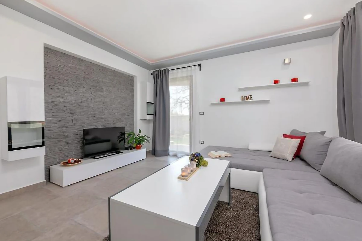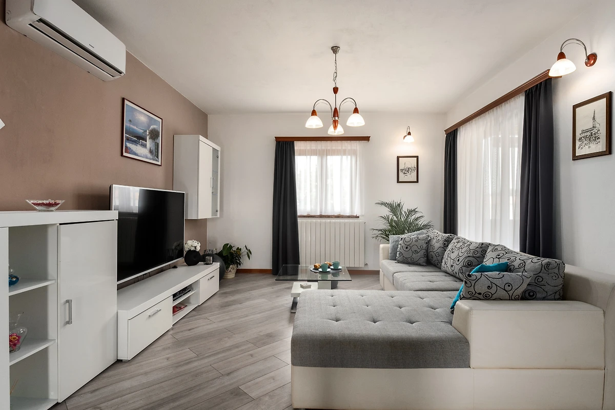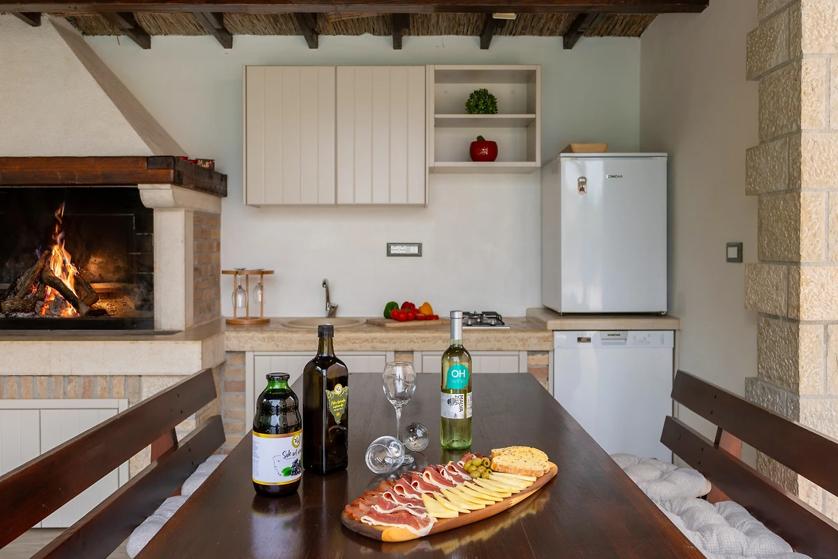 Villa Dani si trova nel villaggio di Vižinada, nell'entroterra dell'Istria. Questa villa con 6 camere da letto dispone di 2 appartamenti con ingressi separati. Può ospitare fino a 12 persone, quindi è ideale per una vacanza con un gruppo di amici o per più famiglie piccole con bambini. Sebbene la villa sia circondata da altre case, la parte più importante - la terrazza esterna con piscina - è completamente recintata e si affaccia sulla campagna boscosa. Questo garantisce la massima privacy e il completo relax in un tranquillo ambiente rurale.