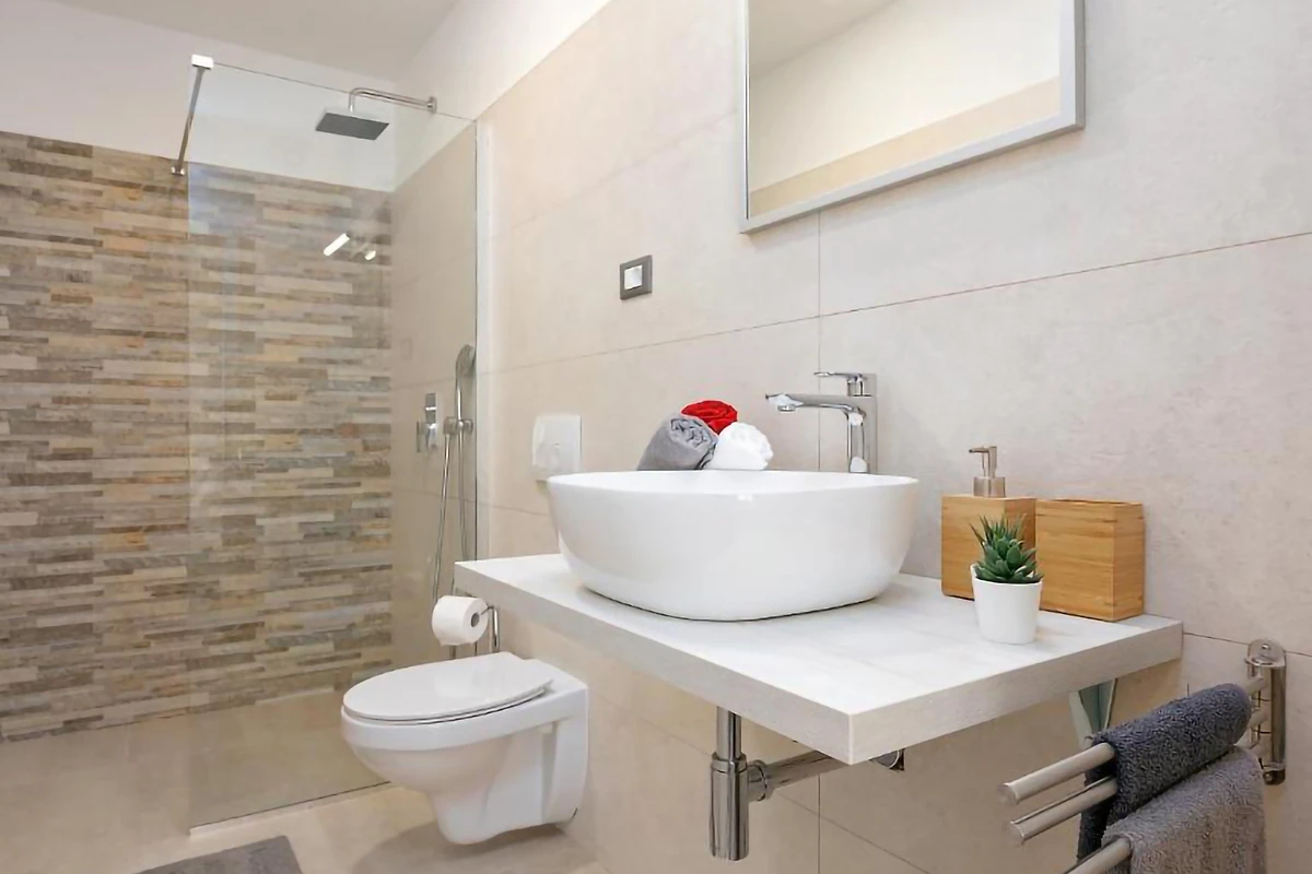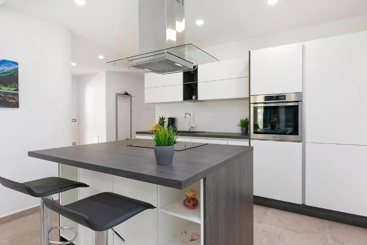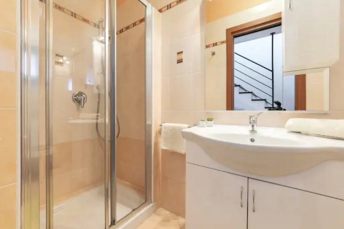 L'interno della villa si estende per 360 m² ed è composto da un piano terra e da altri 2 piani. Nel primo appartamento, situato al piano terra, sarete accolti da un soggiorno con un grande divano e una TV. Uno spazio fatto apposta per le lunghe serate di film. Dal soggiorno si accede a un open space composto da una cucina moderna con isola e una sala da pranzo con 6 sedie. Sullo stesso piano si trovano 2 camere da letto e 2 bagni. 1 camera da letto è dotata di letto matrimoniale e bagno privato, mentre 1 camera da letto ha 2 letti per 1 persona. L'appartamento ha un'uscita sulla terrazza al piano terra, ideale per gustare il caffè del mattino.