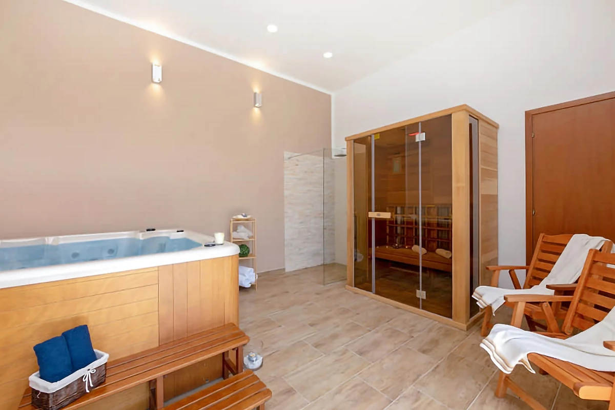 Villa Dani si trova in un giardino ben curato di 1000 m². Lì sarete accolti da una piscina con sedie a sdraio e un'area relax. E qualcosa che sicuramente significa molto nelle calde giornate estive: una cucina estiva attrezzata con fornelli, frigorifero, lavastoviglie e, naturalmente, una griglia a legna. Accanto alla cucina si trova un tavolo da pranzo dove potrete gustare cibi e bevande o semplicemente rilassarvi con vista sulla piscina. Quando vi stancherete di cucinare e di rilassarvi, potrete continuare con lo stesso spirito nell'area benessere interna, che dispone di una vasca idromassaggio per 5 persone e di una sauna a infrarossi. Dopo, potrete tornare alle vostre "responsabilità" o divertirvi giocando a freccette, calcio balilla o ping pong. I bambini apprezzeranno il parco giochi con porte da calcio e altalene, per cui non rischiano di annoiarsi. Lo stesso vale per voi.