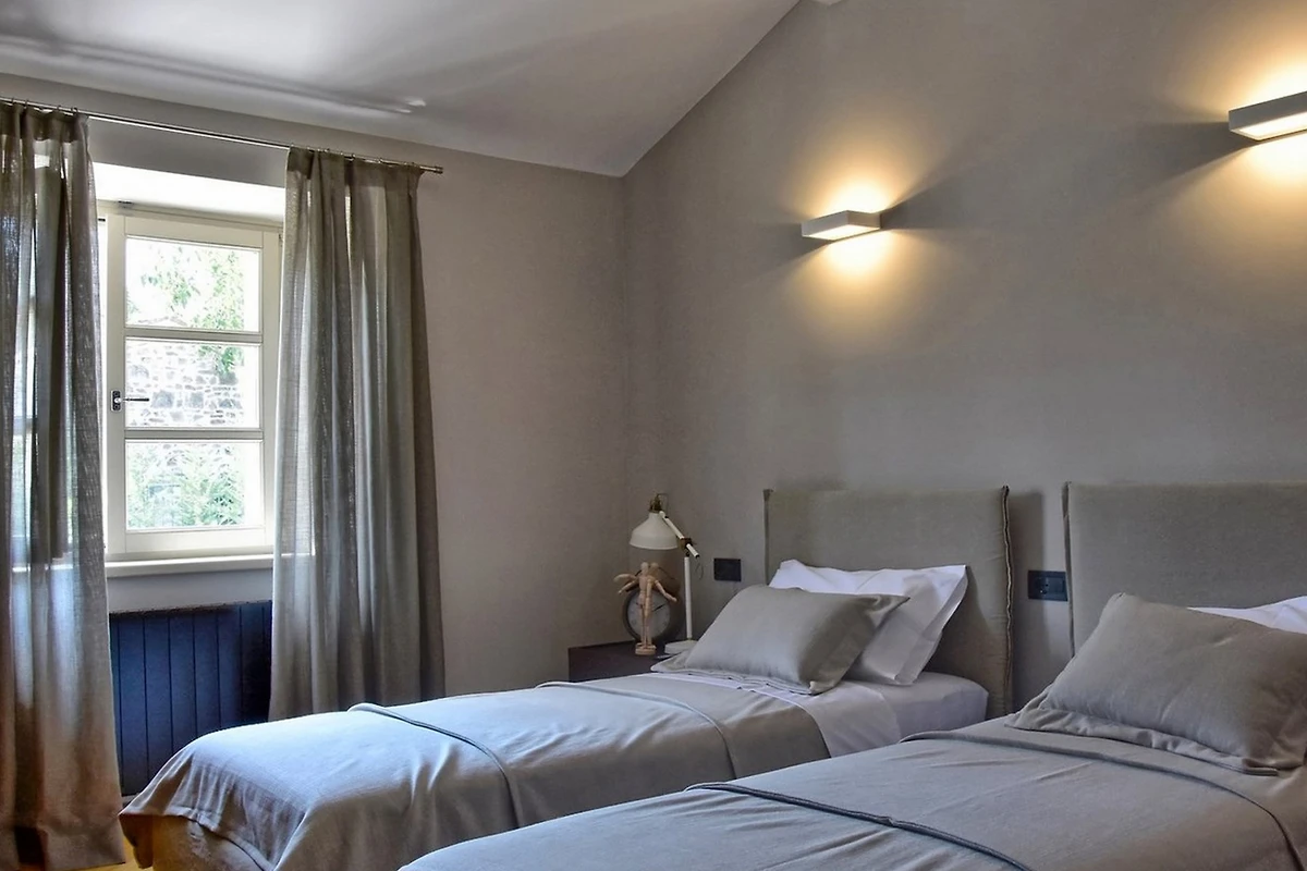 La villa dispone di 5 camere da letto con bagno privato che possono ospitare comodamente fino a 10 persone. La maggior parte delle camere ha un letto matrimoniale, mentre 1 ha 2 letti singoli. Ogni camera è dotata di armadio e TV satellitare, e 2 camere hanno anche accesso a un balcone. I bagni sono dotati di doccia, asciugacapelli e articoli da toilette. Oltre ai 5 bagni nelle camere da letto, la villa dispone anche di 2 servizi igienici per gli ospiti.