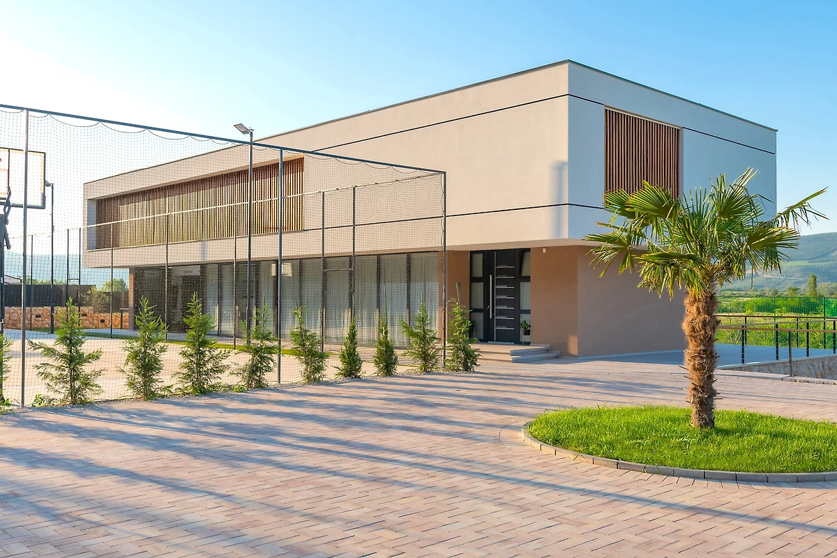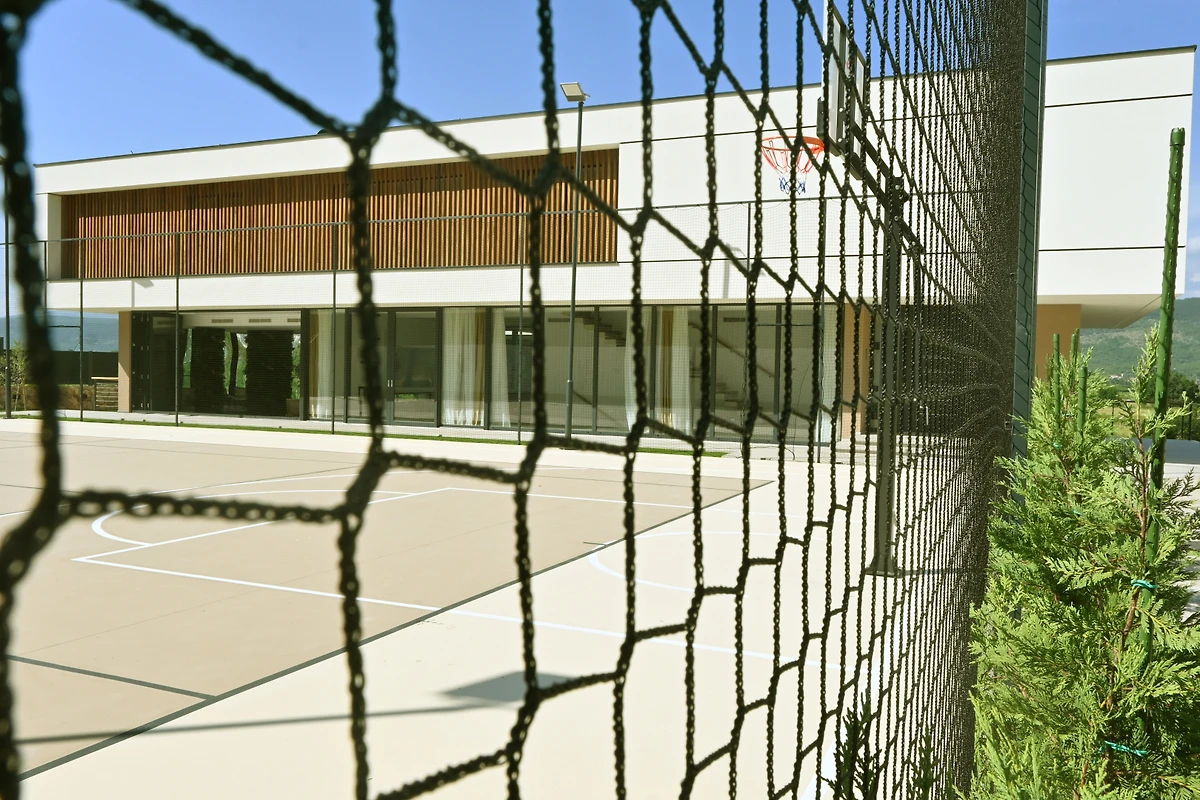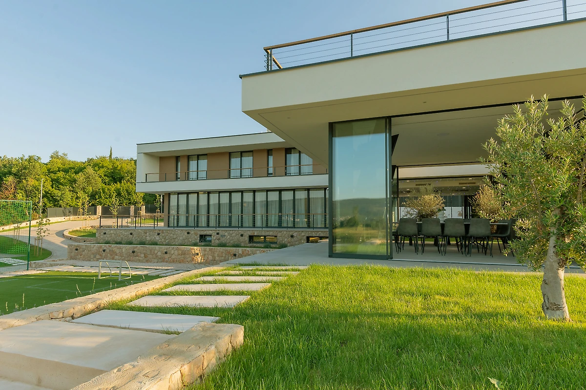 Situata su un terreno completamente recintato di 3.800 m², la villa offre numerose attività ricreative: un parco giochi all’aperto per bambini, un campo sportivo polivalente (tennis e basket), un campo da calcio, ampie terrazze e un parcheggio per 12 veicoli. All'interno, gli ospiti troveranno 8 camere da letto, 8 bagni, un WC aggiuntivo, 2 cucine completamente attrezzate nella struttura principale e una cucina estiva nell'annesso. Inoltre, la villa offre un ampio soggiorno, una grande sala per riunioni e feste, un garage per due auto, una lavanderia privata e un'esclusiva area benessere.