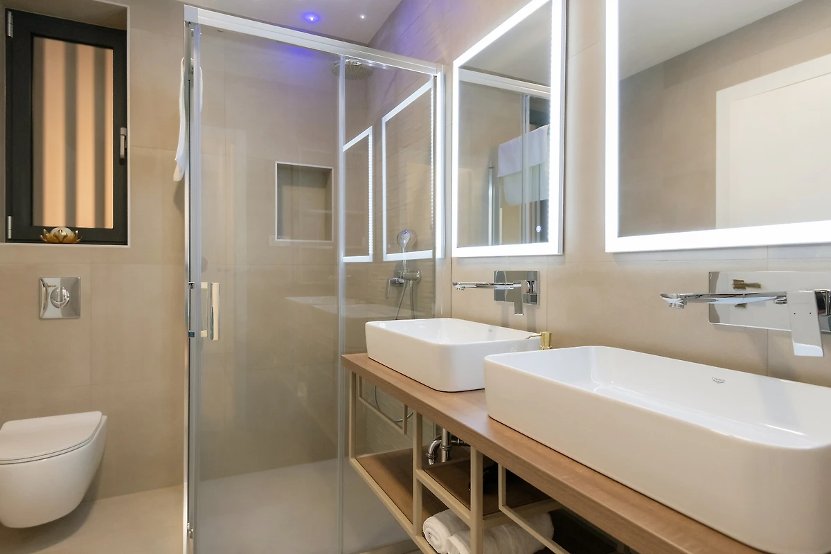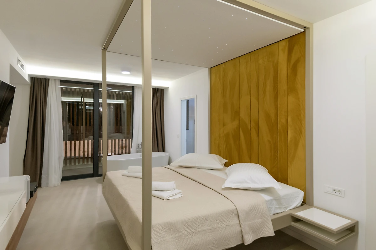 Uno dei punti di forza è la vasca idromassaggio sulla terrazza panoramica, insieme a una sauna, una moderna palestra e una piscina riscaldata di 10 metri. Considerando i cambiamenti climatici, la piscina è stata progettata per essere coperta in alcuni periodi dell'anno, creando uno spazio interno accogliente. Durante l'estate, invece, viene completamente aperta e diventa parte integrante dell'area esterna, un dettaglio che affascina molti ospiti.