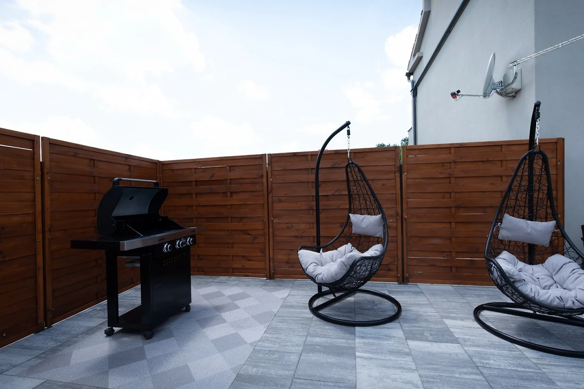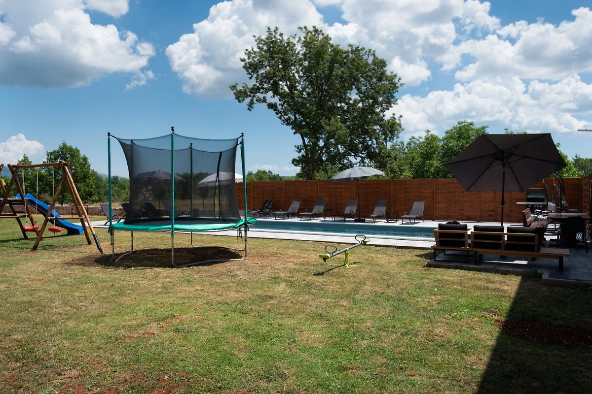 In un giardino di 1000 m² splendidamente curato, vi attendono numerose strutture per il relax e il divertimento. Godetevi la piscina privata, rilassatevi sulle sedie a sdraio con il vostro libro preferito o trascorrete le vostre serate nel patio coperto con cucina estiva e barbecue, il luogo ideale per preparare deliziosi pasti e socializzare con la famiglia e gli amici fino a tarda notte. Per i bambini c'è un parco giochi con scivolo, altalene e trampolino e ci sono anche campi da calcio e da pallavolo.