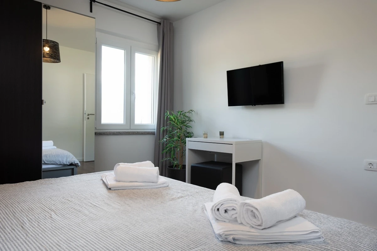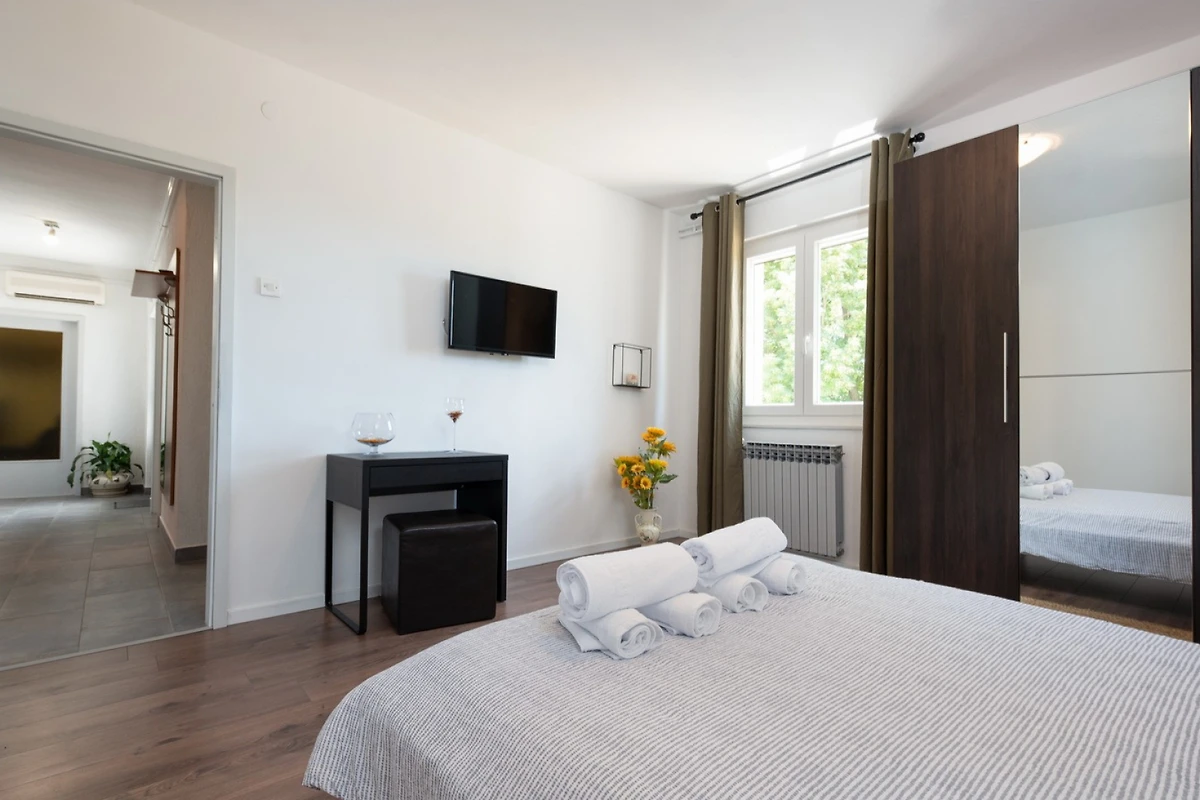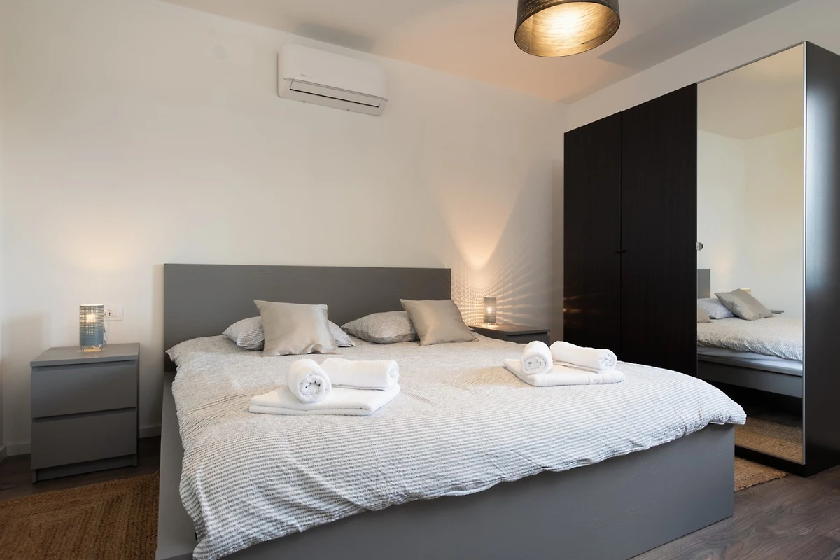 Ogni piano dispone di 3 comode camere da letto e 2 bagni moderni, per un totale di 6 camere da letto e 4 bagni. Tutte le camere sono climatizzate e dotate di letti matrimoniali per un sonno tranquillo. Ogni piano ha anche una terrazza privata, ideale per godersi il caffè mattutino o un bicchiere di vino al tramonto.