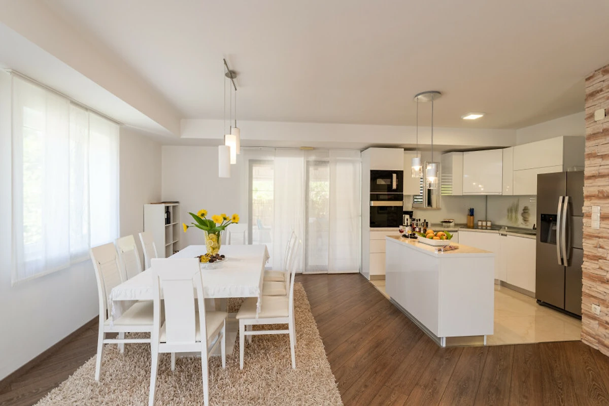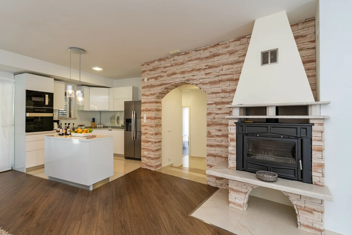 Il cuore della casa è la cucina in stile americano, attrezzata con elettrodomestici di alta qualità tra cui un piano cottura a induzione, frigorifero, congelatore, lavastoviglie, forno, microonde, macchina da caffè e tostapane. Completamente fornita di stoviglie e piatti, è perfetta per preparare pasti in famiglia e creare ricordi duraturi.