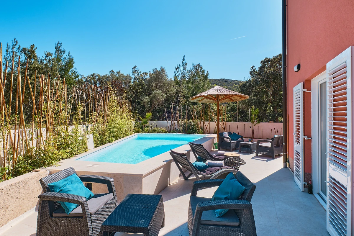 Situata in un'area incantevole, questa villa offre un rifugio sereno a breve distanza dalla città di Cres e dai servizi locali. Che siate una famiglia in cerca di una fuga tranquilla o una coppia alla ricerca di una romantica evasione, questa proprietà promette un'esperienza di vacanza croata deliziosa.