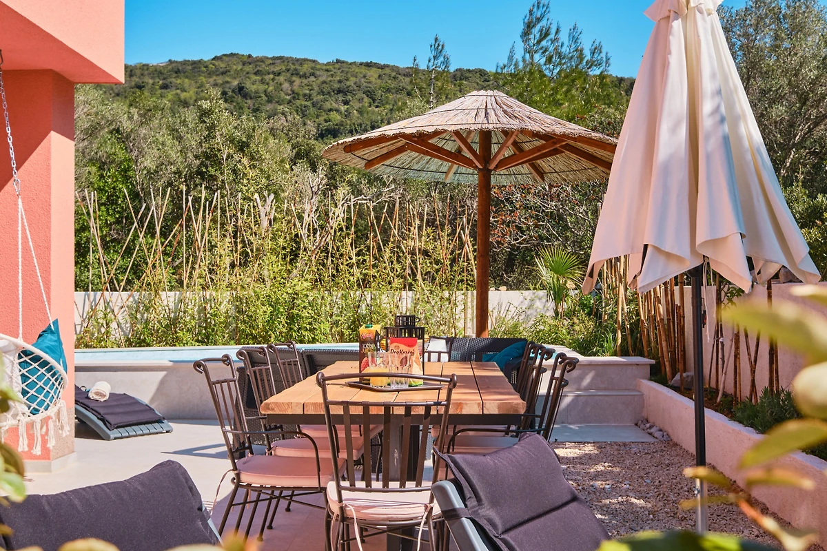 Scopri una deliziosa villa accogliente per famiglie e coppie, situata in una splendida urbanizzazione sull'isola di Cres, che offre un perfetto connubio di comfort e relax. Questa spaziosa proprietà di 125 m² sorge su un generoso lotto di 350 m², offrendo ampi spazi per un'esperienza di vacanza indimenticabile.