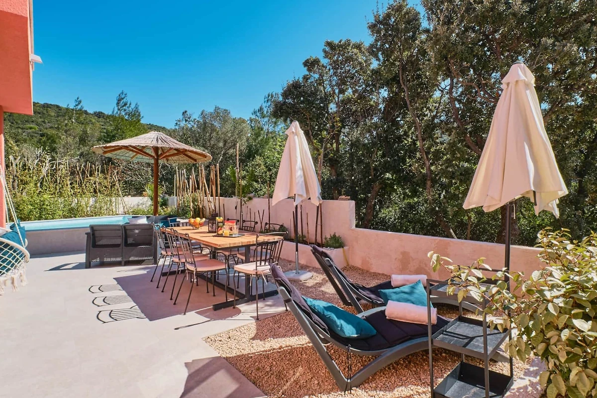 Gli appassionati di attività all'aperto ameranno la piscina privata di 7x3 metri, perfetta per rinfrescarsi durante le calde giornate estive. La proprietà vanta un bellissimo giardino con mobili da giardino, un'area barbecue e una terrazza che offre una vista mozzafiato sulla piscina e sul giardino. Una spiaggia rocciosa dista solo 250 metri, garantendo un facile accesso a splendidi paesaggi costieri.