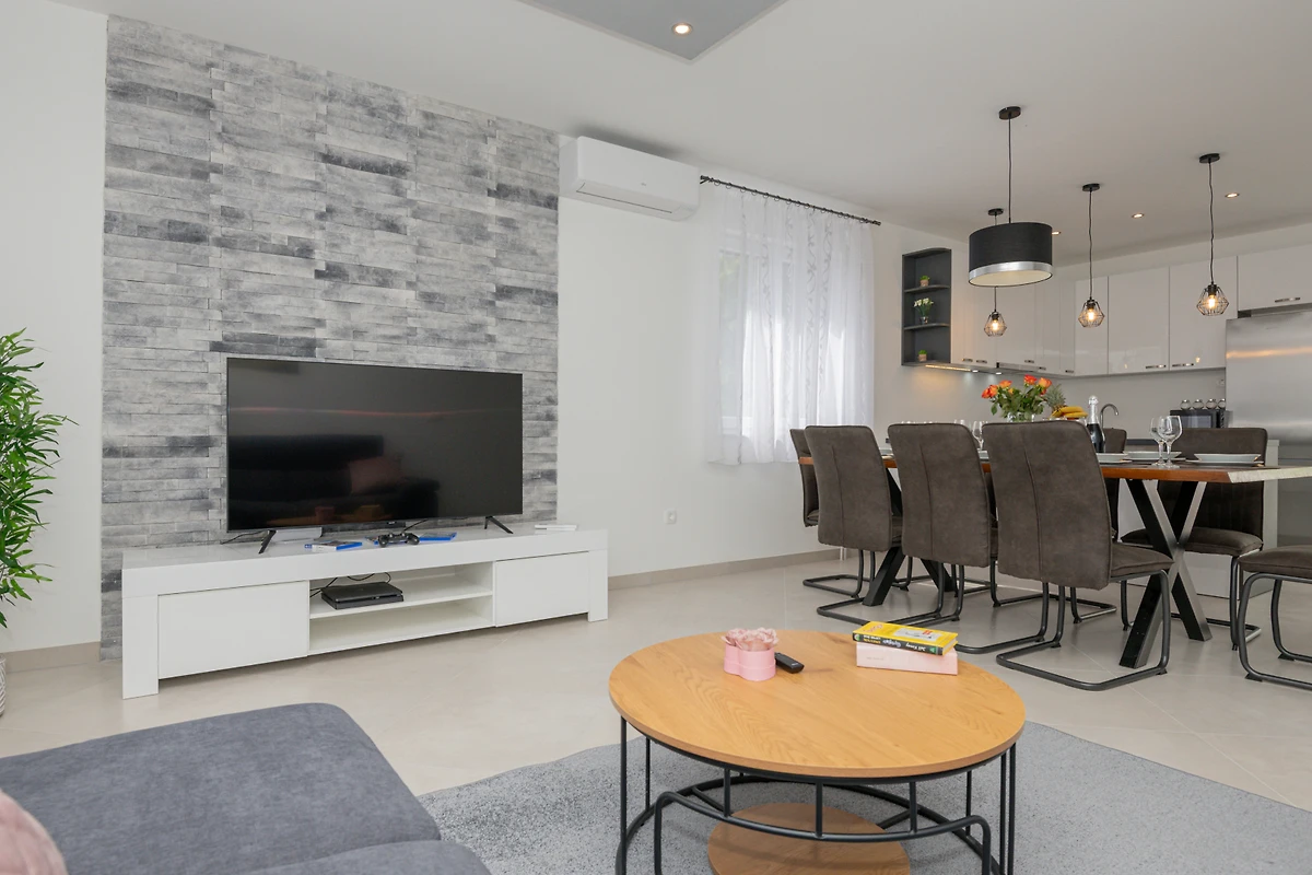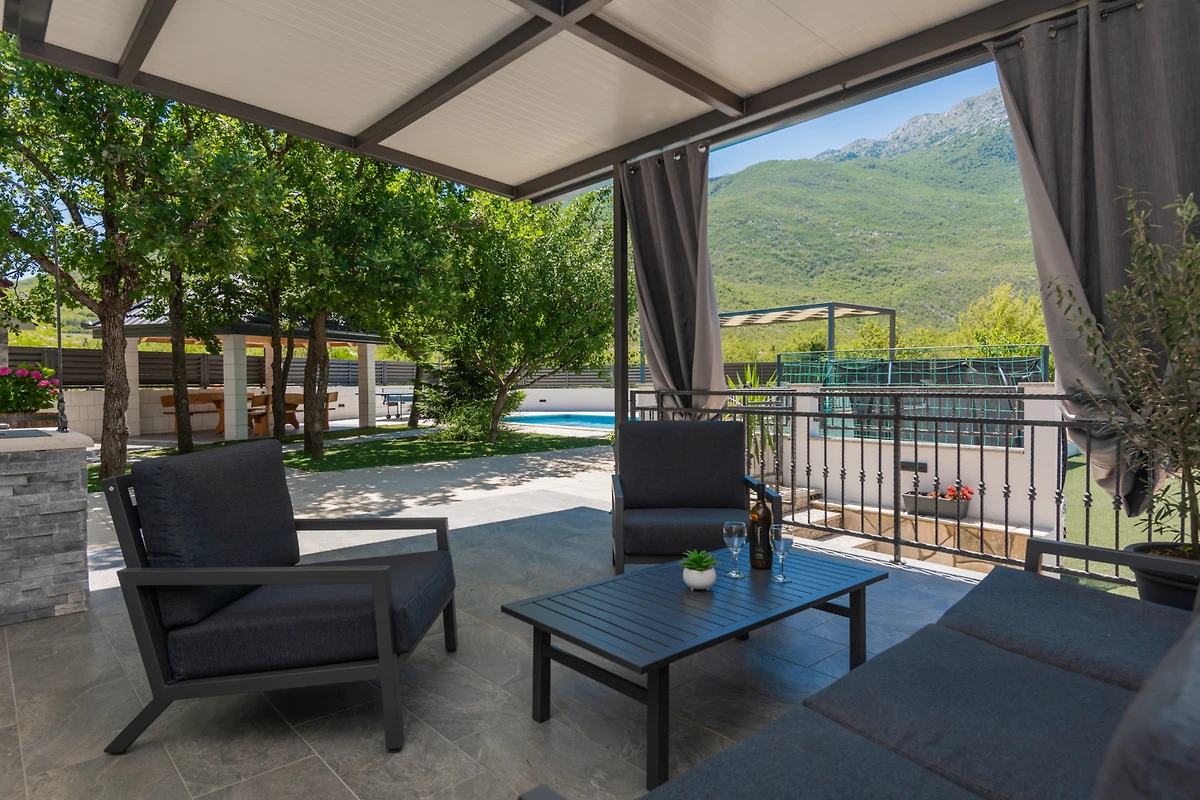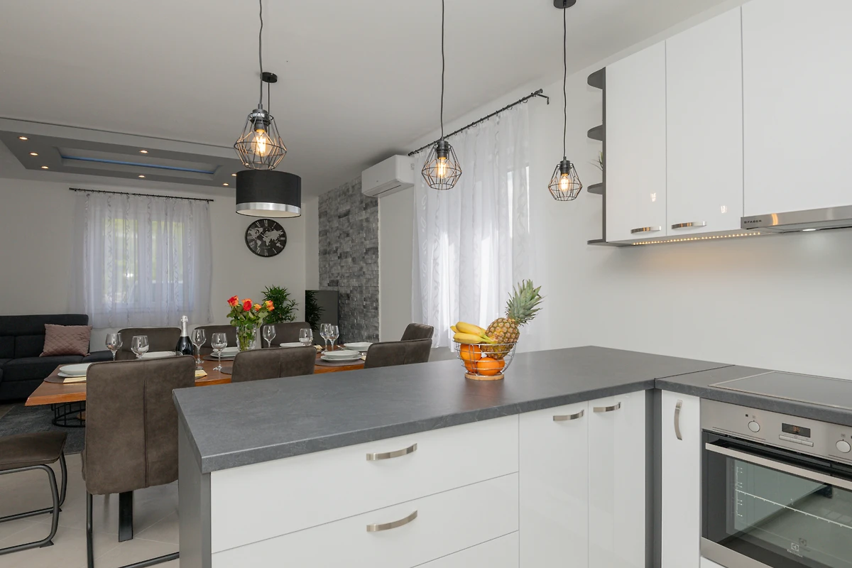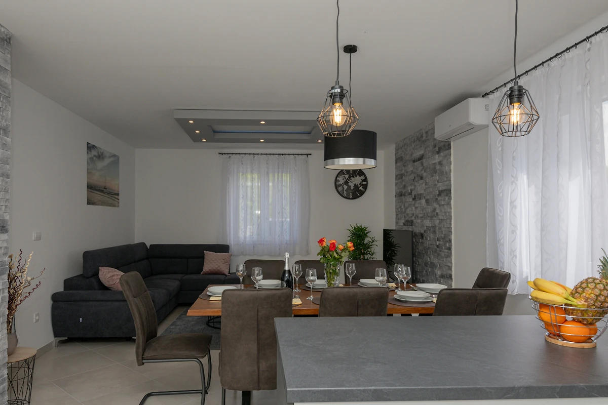Goditi viste mozzafiato della piscina e del giardino, creando lo sfondo perfetto per un'esperienza di vacanza croata indimenticabile.