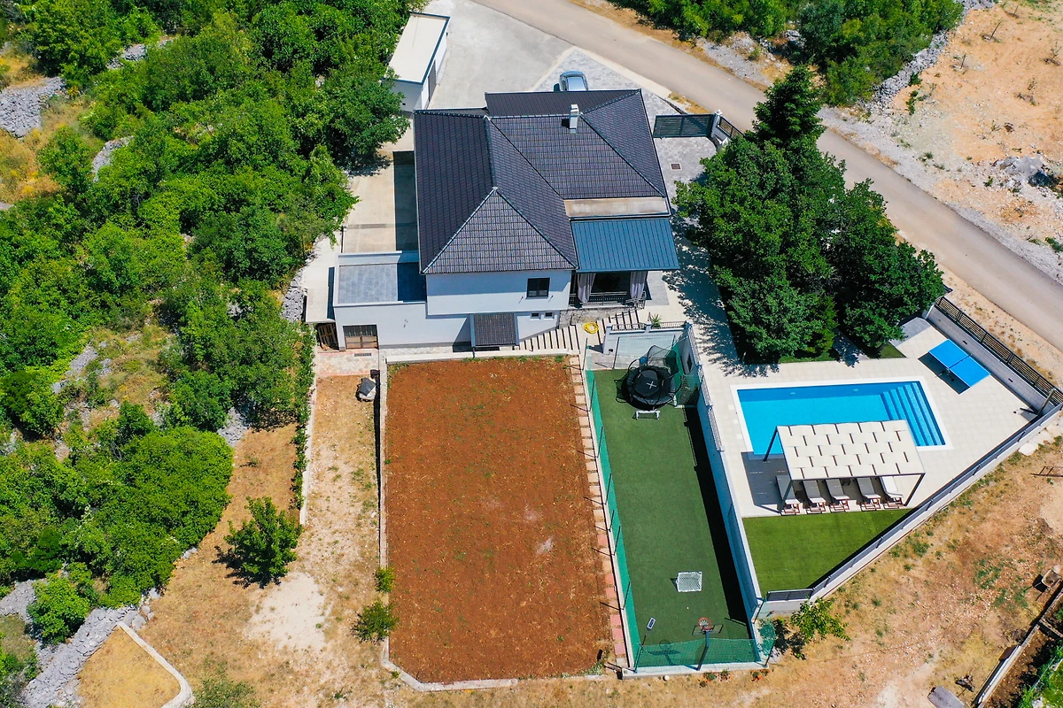 Gli appassionati di attività all'aperto ameranno la piscina privata da 4x10 metri, perfetta per rinfrescarsi nelle calde giornate croate. L'ampio appezzamento di 1.830 metri quadrati offre un giardino splendidamente curato con mobili da giardino, un'area barbecue e un perimetro recintato per una maggiore privacy e sicurezza.