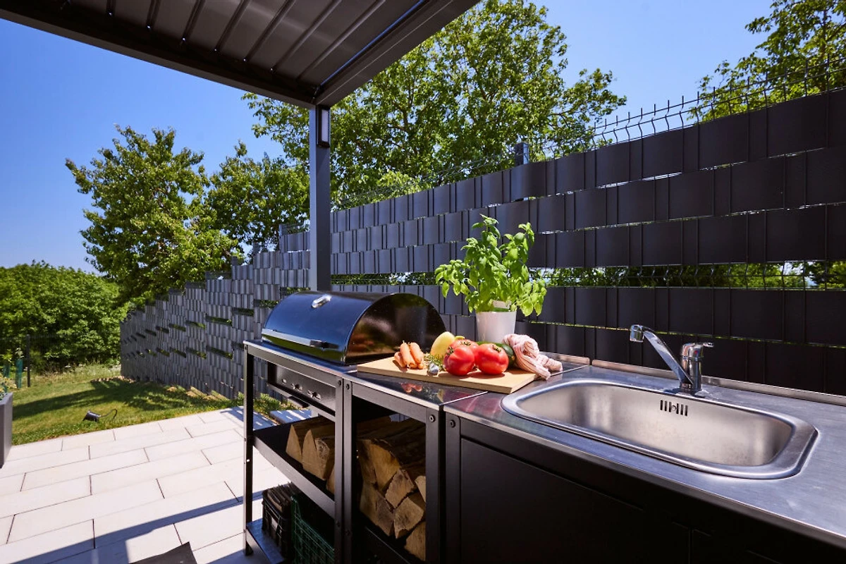 Gli appassionati di attività all'aperto ameranno l'ampio appezzamento di 1400 m², completo di un bellissimo giardino, mobili da giardino, area barbecue e un perimetro recintato. La terrazza offre il punto perfetto per pranzi all'aperto e per godere delle viste del bosco circostante.