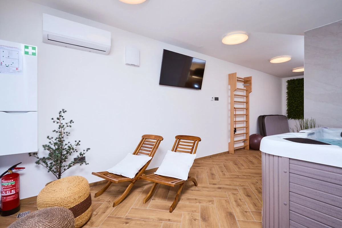 Scopri Villa M.I.L.A., un rifugio sereno incastonato in un ambiente boschivo tranquillo vicino a Bjelovar, che offre la fuga perfetta per famiglie e coppie in cerca di comfort e relax.