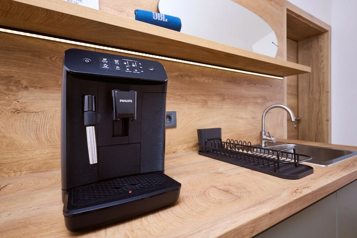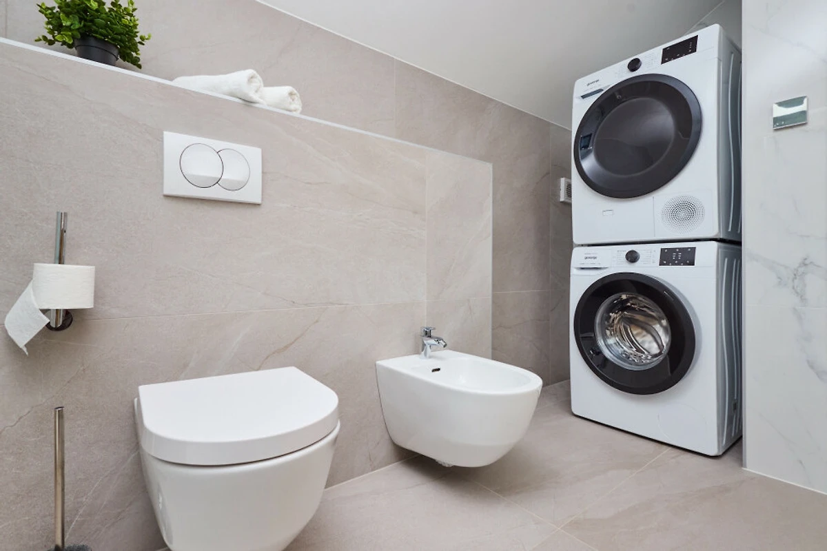 La moderna cucina in stile americano è completamente attrezzata con elettrodomestici di alta qualità, tra cui un piano cottura a induzione, frigorifero, congelatore, forno, lavastoviglie, macchina da caffè e stoviglie essenziali. Goditi la comodità di una lavatrice e di un asciugatrice per un ulteriore comfort durante il tuo soggiorno.