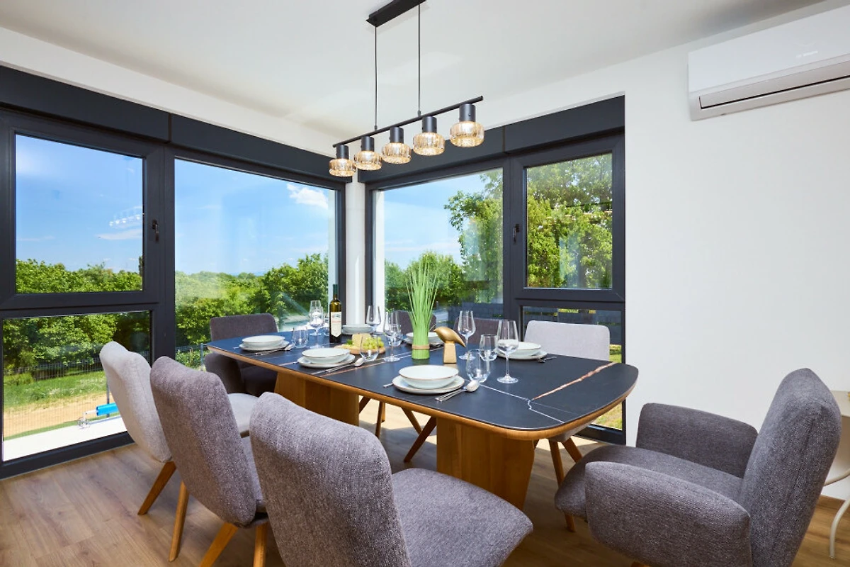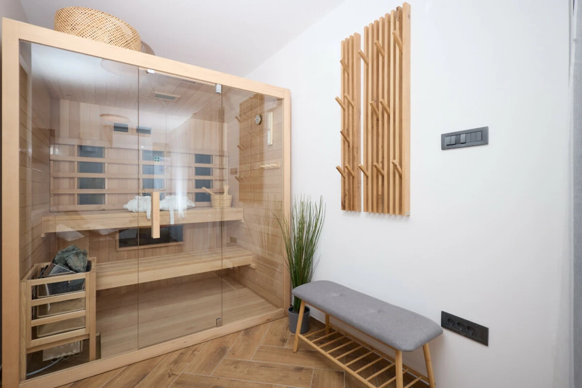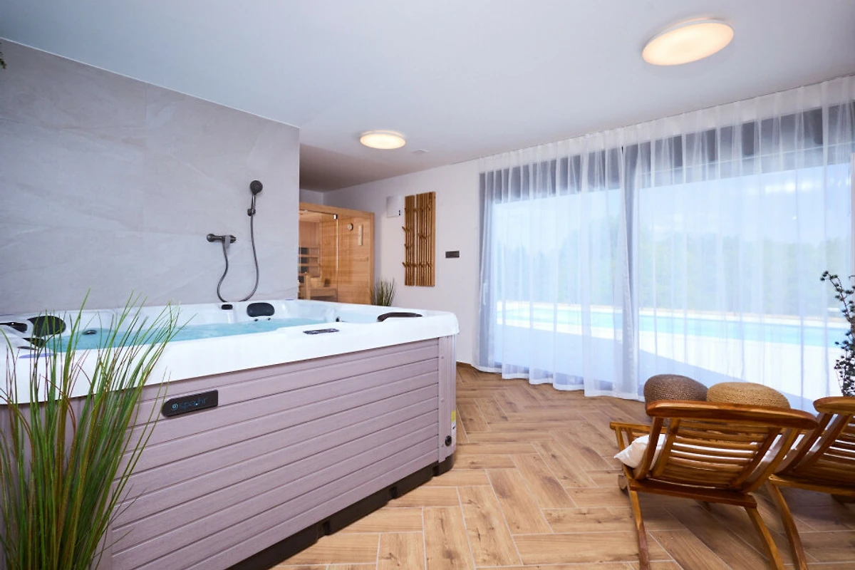Rilassati nella piscina privata riscaldata della villa (4x8 metri) o distenditi nella lussuosa area sauna e spa. La proprietà dispone di aria condizionata e una pompa di calore efficiente per il comfort durante tutto l'anno. L'intrattenimento è garantito da TV satellitare e WiFi gratuito.