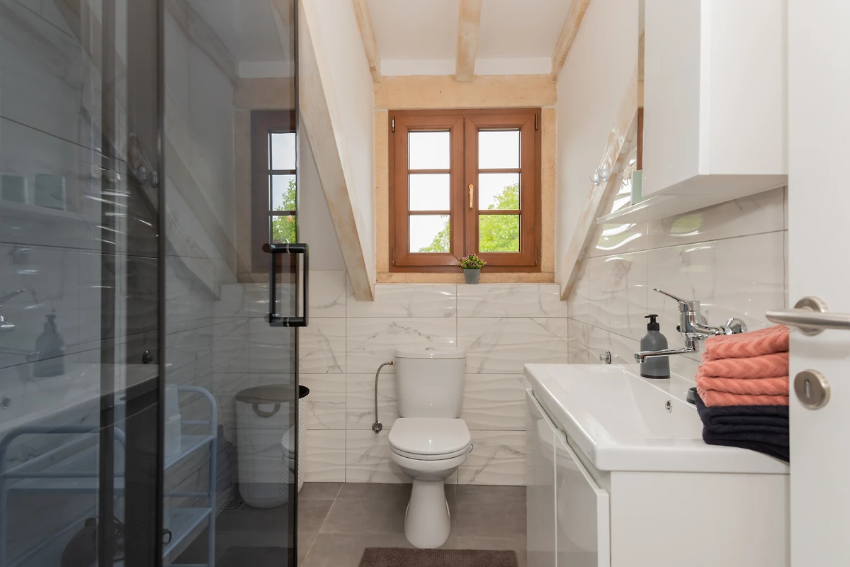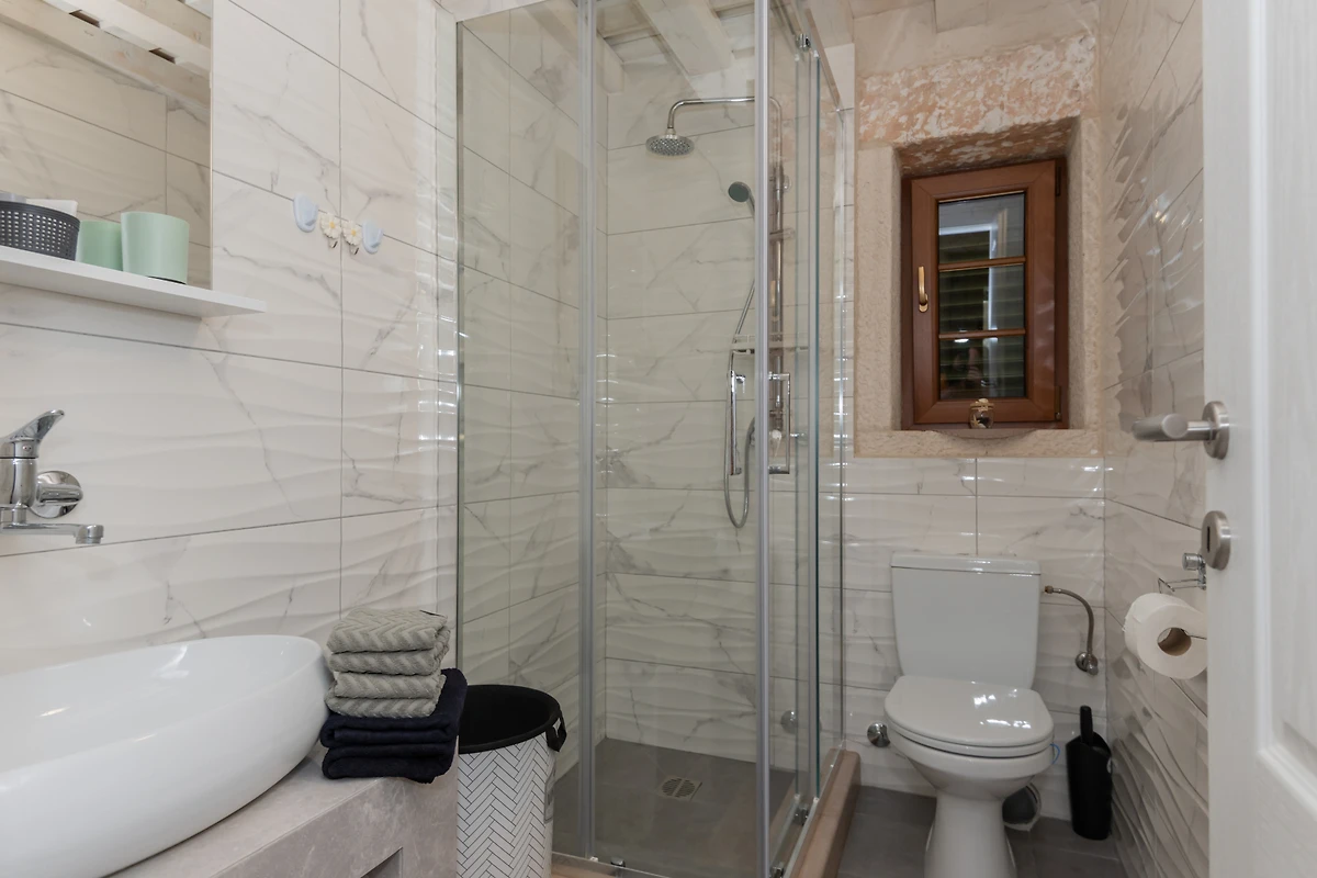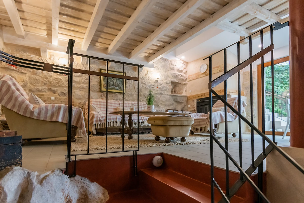 Villa Kameni Cvijet offre un delizioso rifugio per famiglie e coppie che cercano una tranquilla fuga in campagna vicino a Kamenmost. Questa spaziosa proprietà di 155m² offre un alloggio confortevole per fino a 6 ospiti, con 3 camere da letto matrimoniali elegantemente arredate e 3 bagni moderni con doccia.